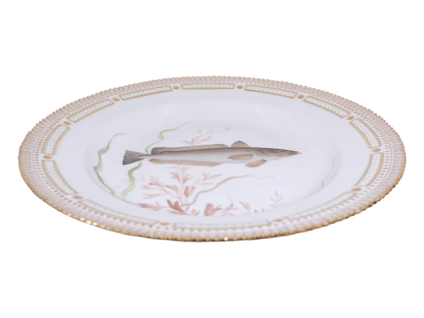 Royal Copenhagen Flora Danica, middagstallerken dekoreret med fisk.