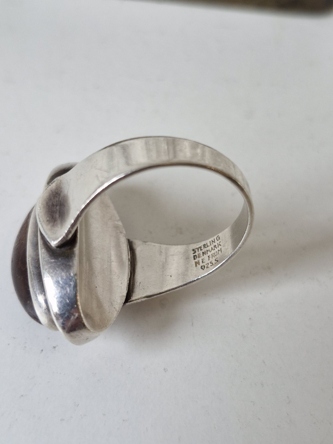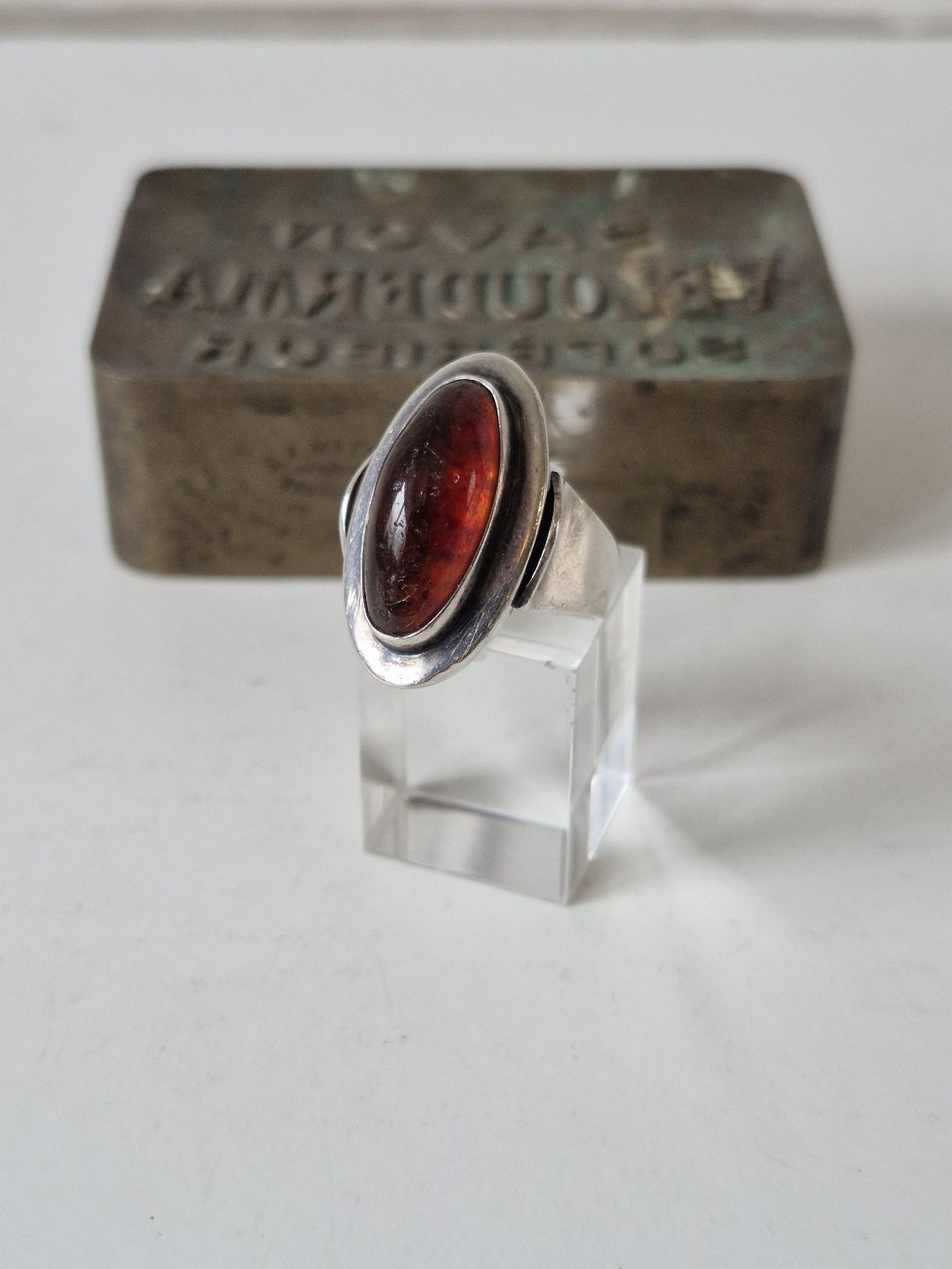 N.E.From vintage ring i sterlingsølv med oval ravperle