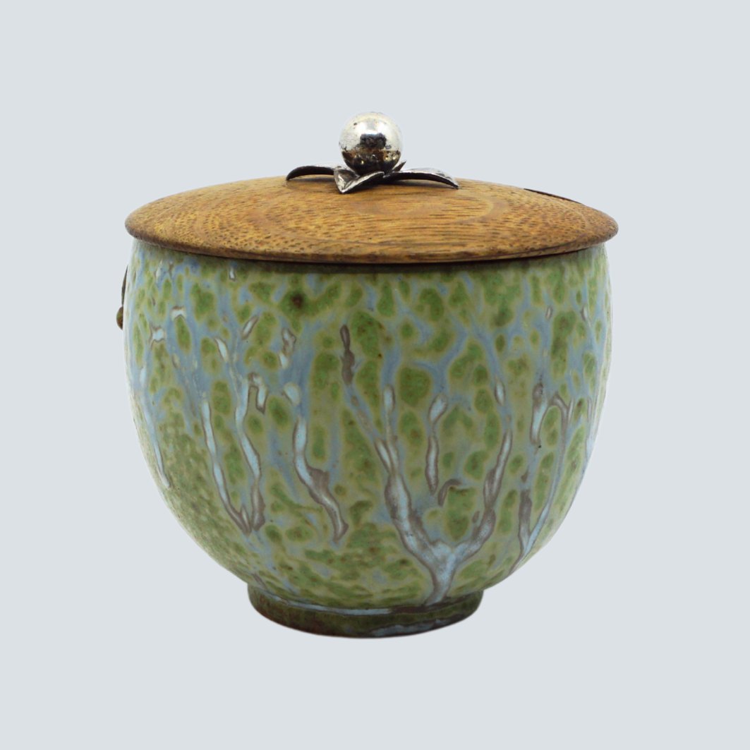 Arne Bang; Lågkrukke af stentøj med grøn glasur
