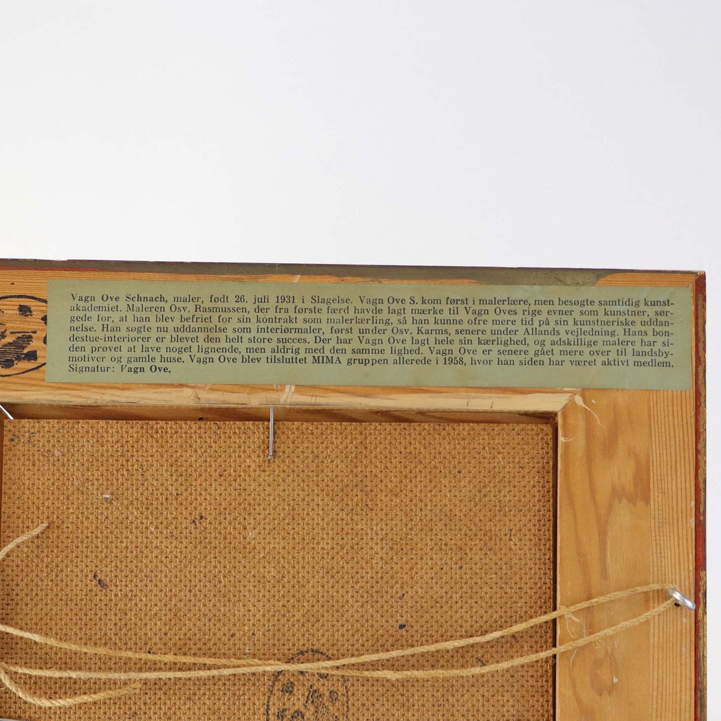 Maleri på plade i guldmalet træramme med med ældre interiør motiv fra dansk bondehus.