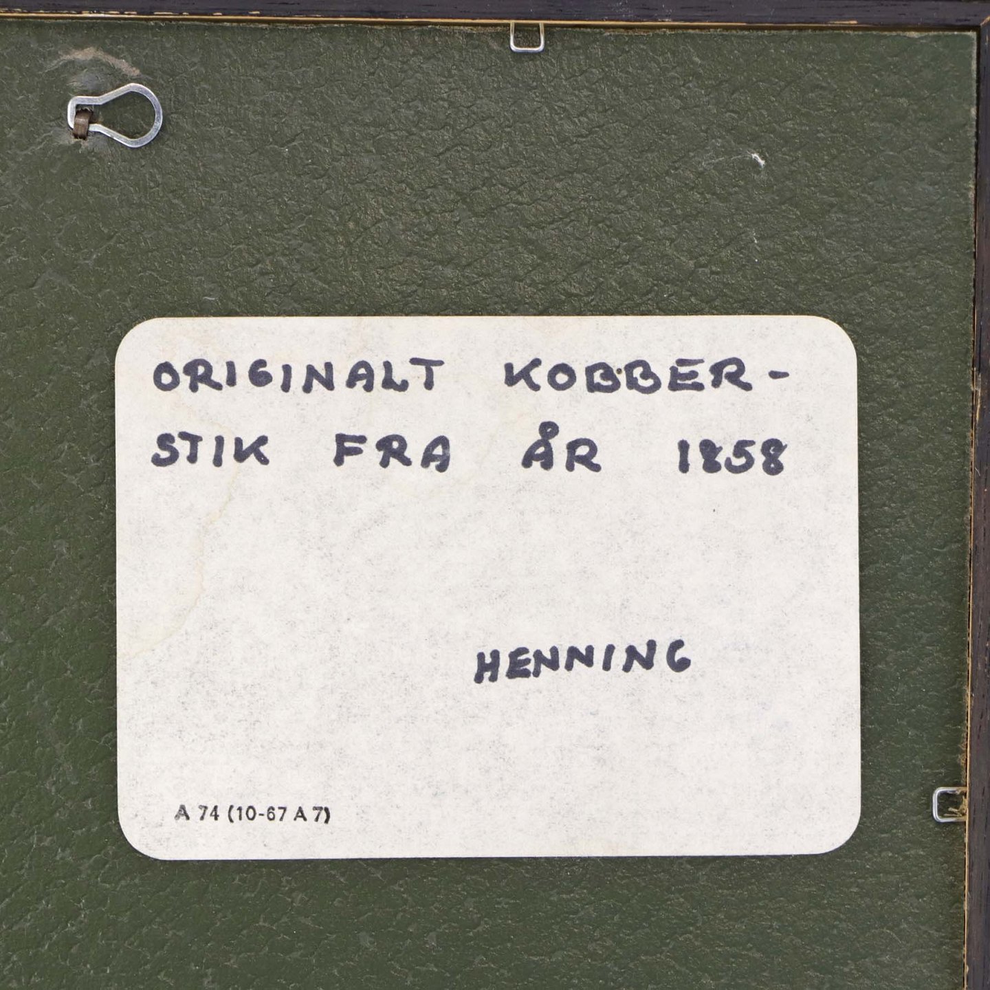 Originalt kobberstik fra år 1858 i træramme med teksten Dragon og motiv af en soldat i blå uniform.