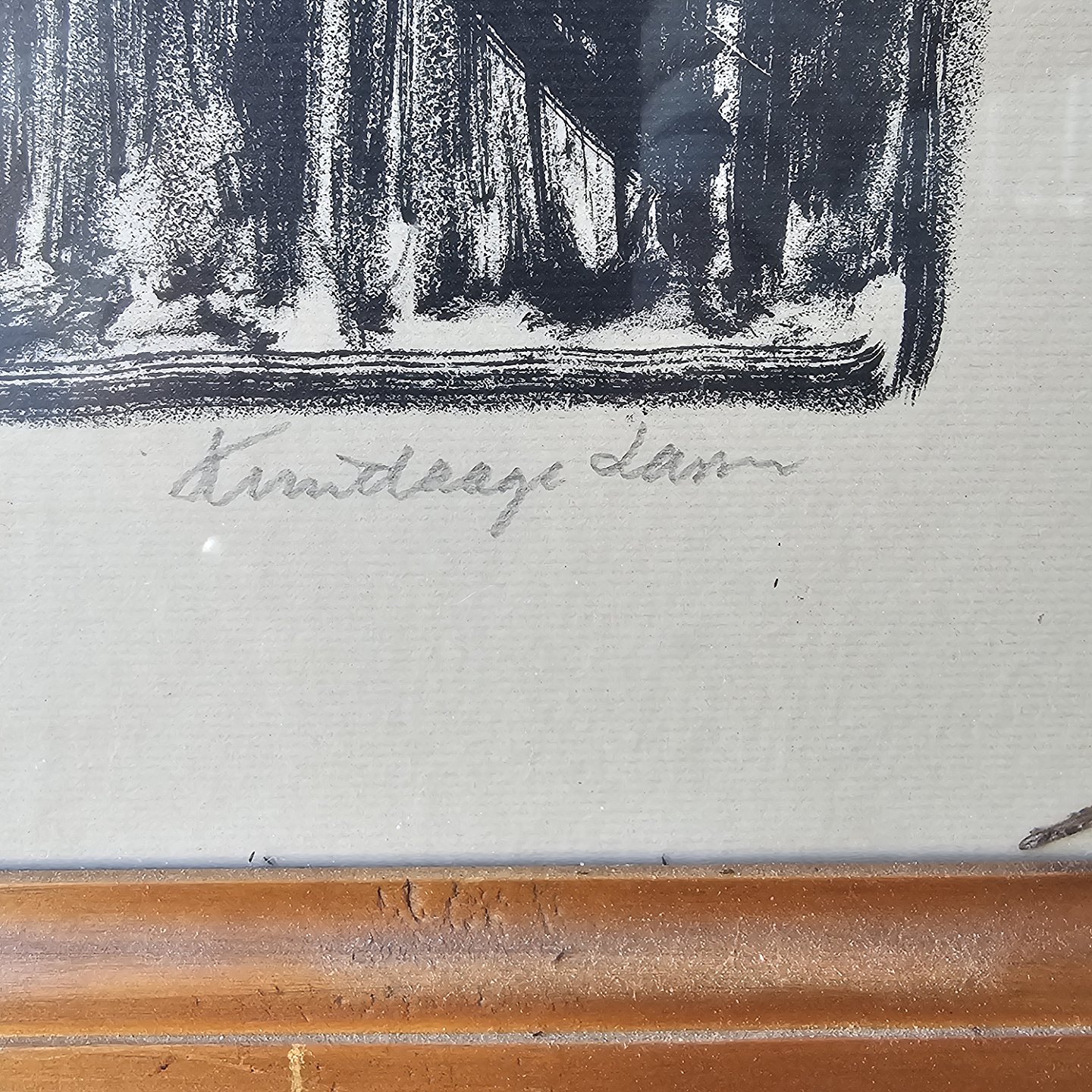 Tryk på papir monteret i træramme, portræt af en mand med en pibe