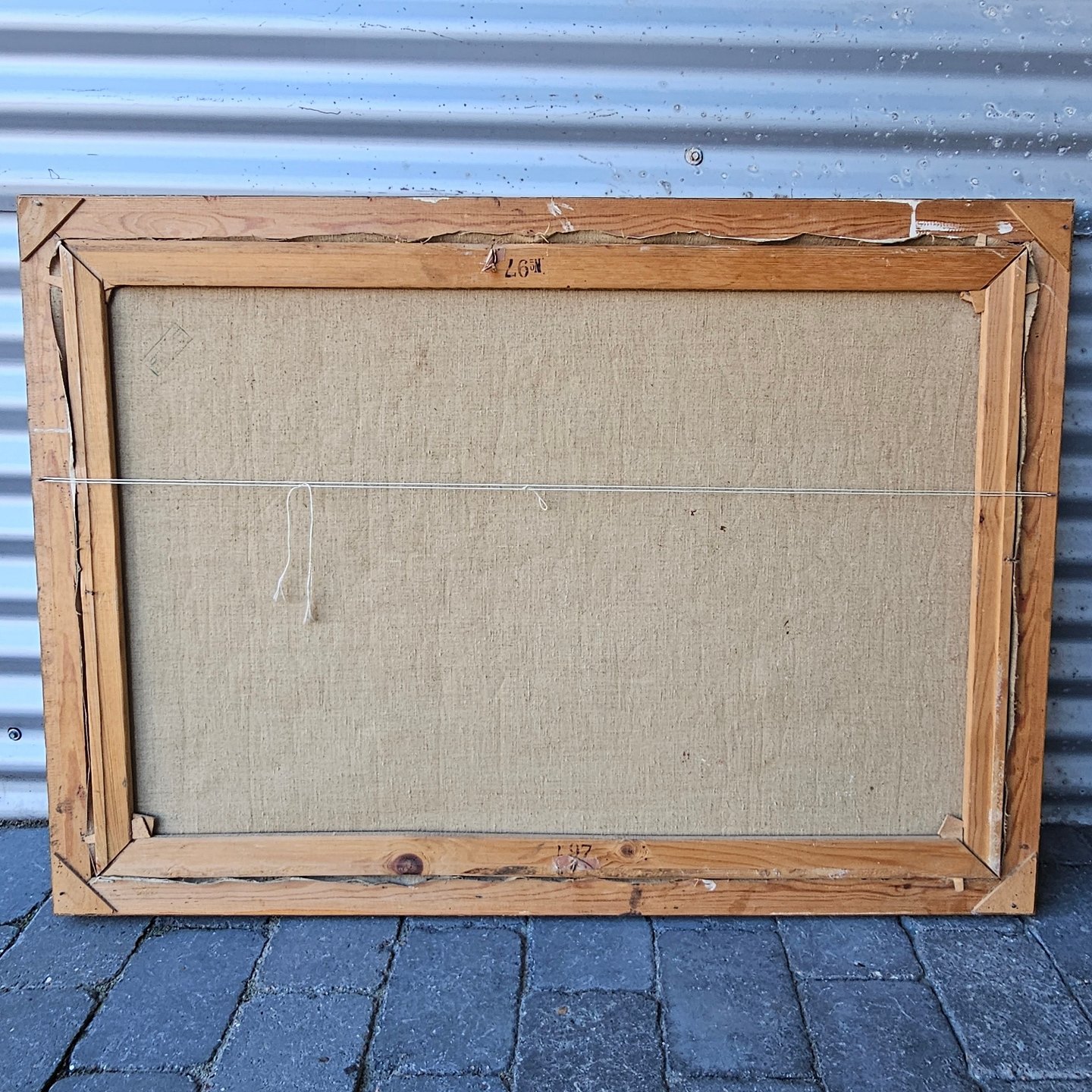 Fremstår med krakeleringer i malingen og brugsspor på rammen