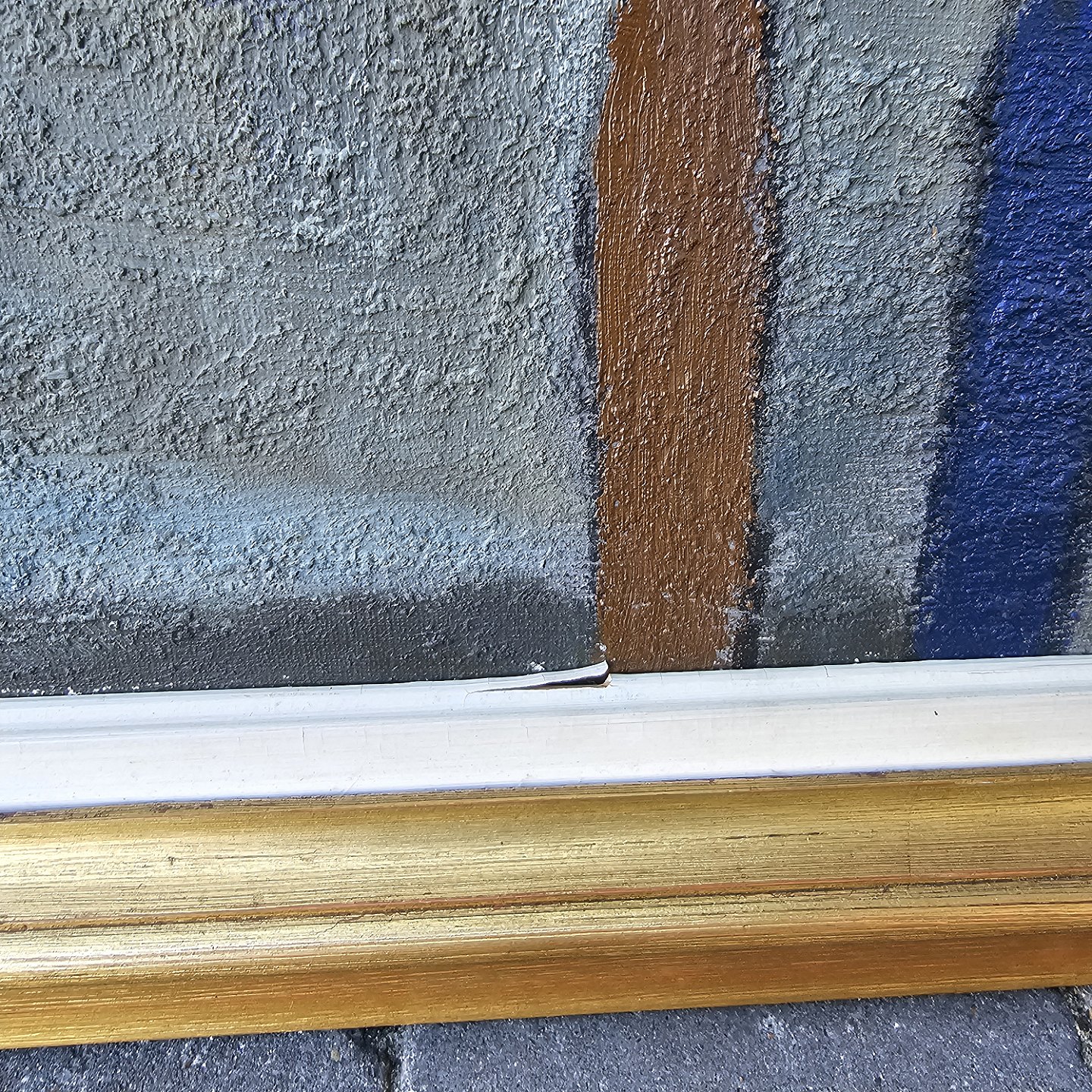 Oliemaleri på lærred monteret i guldmalet ramme med motiv af en lille landsby