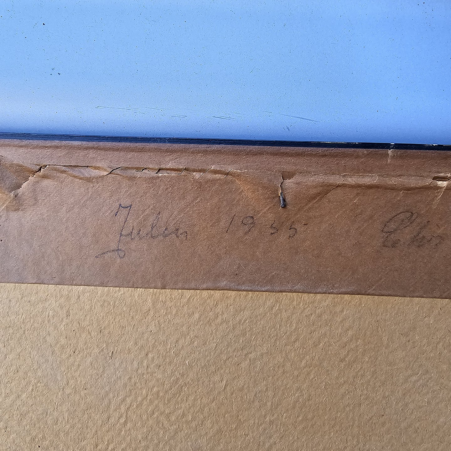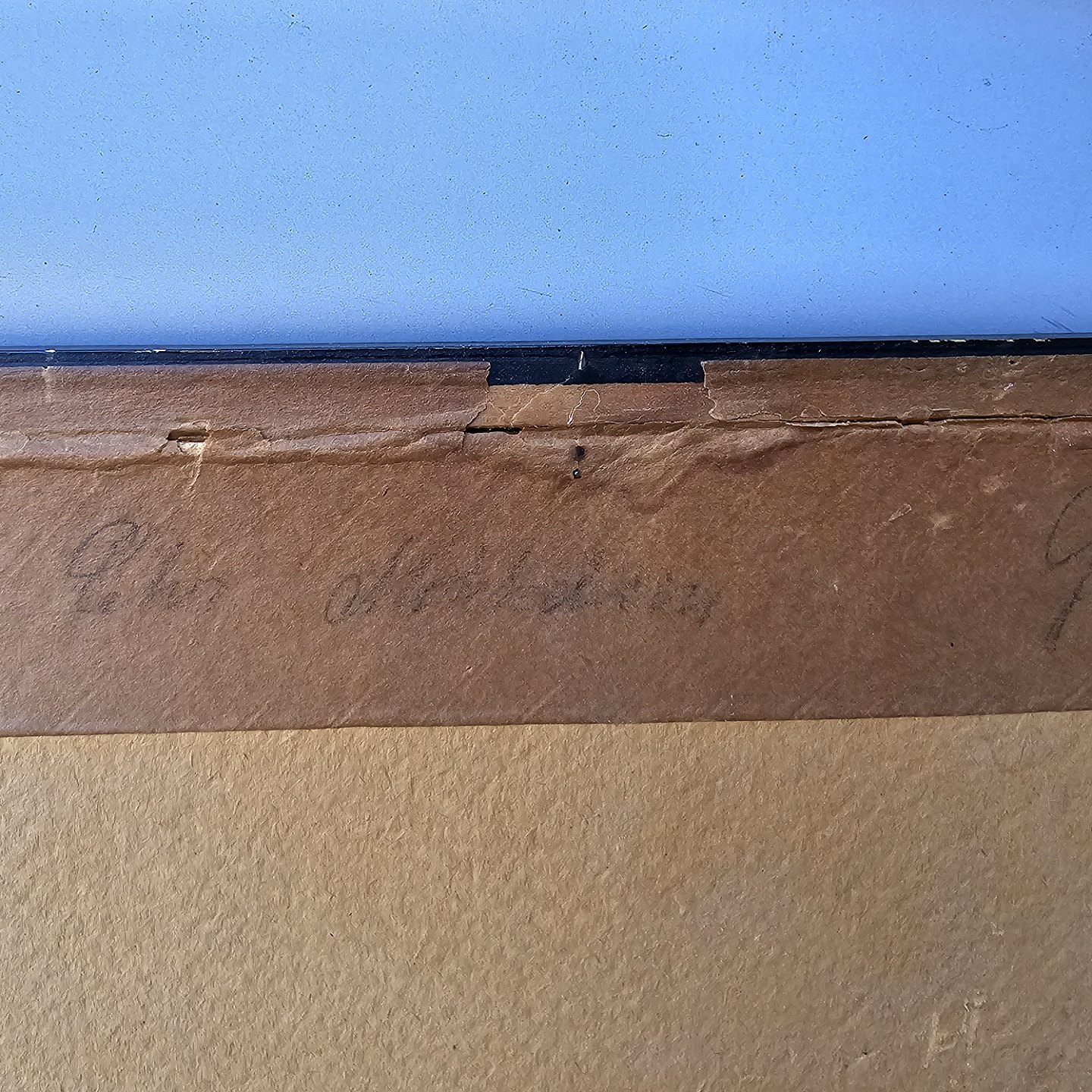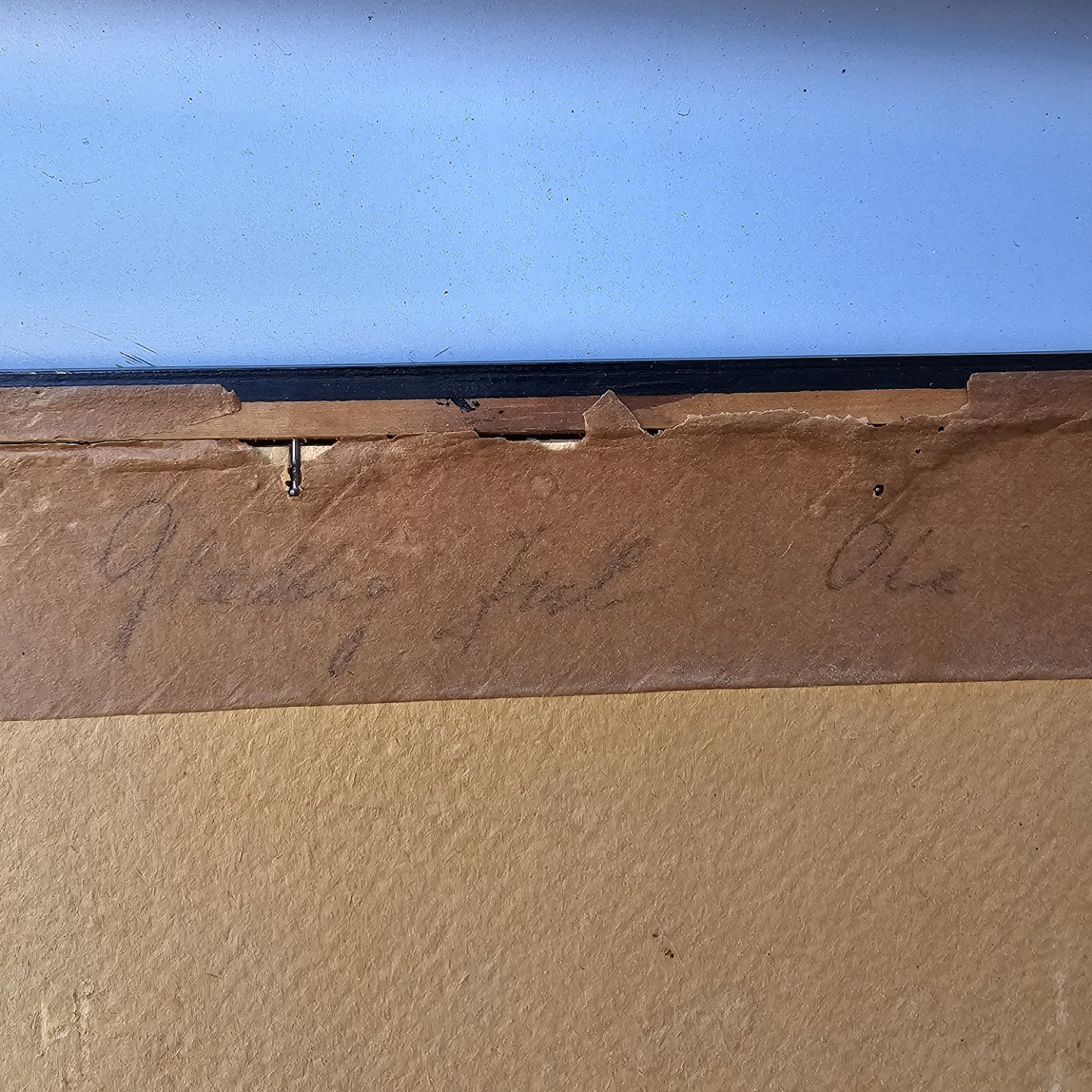 Fremstår med brugsspor på rammen og nålemærker i papiret
