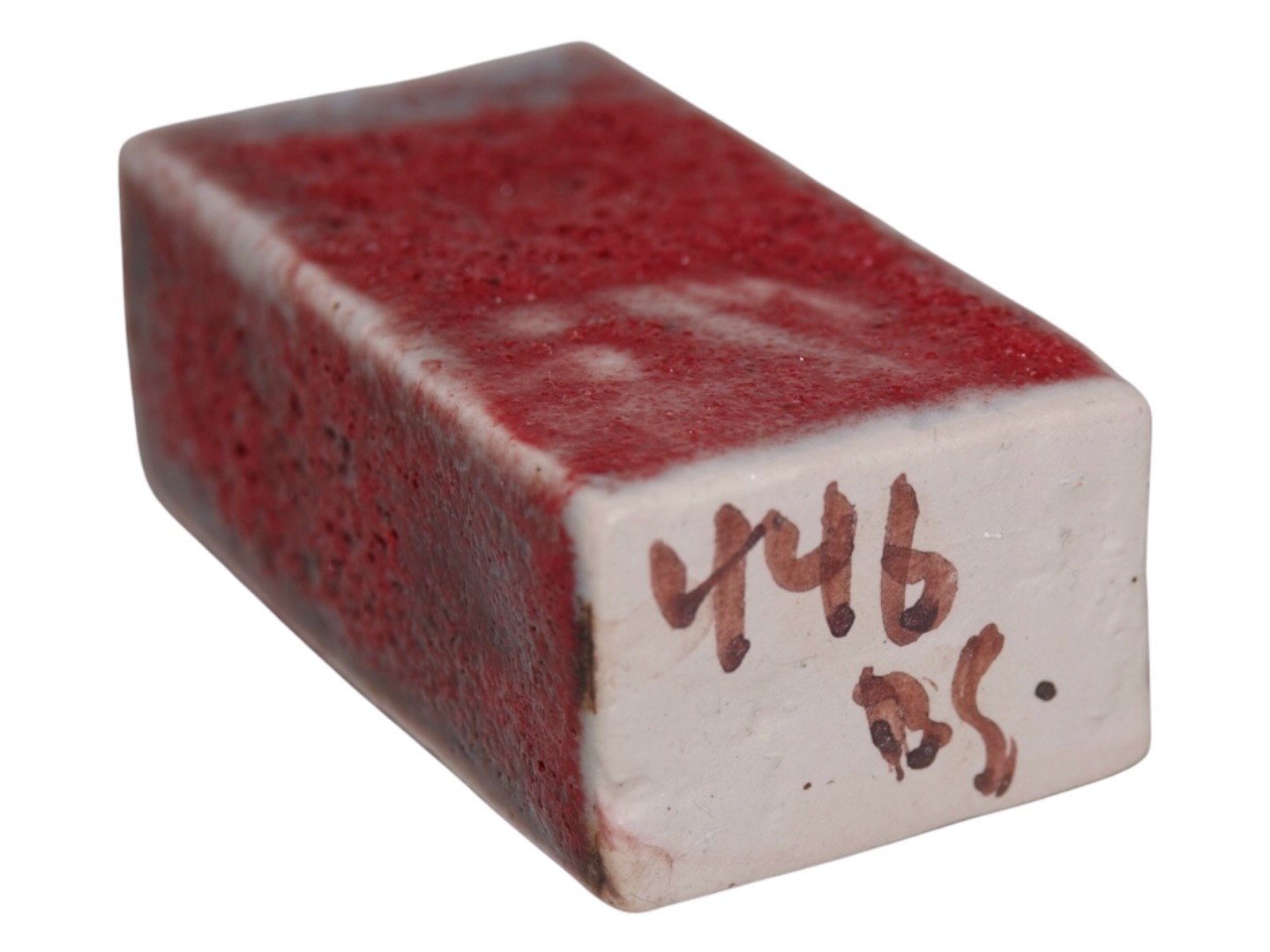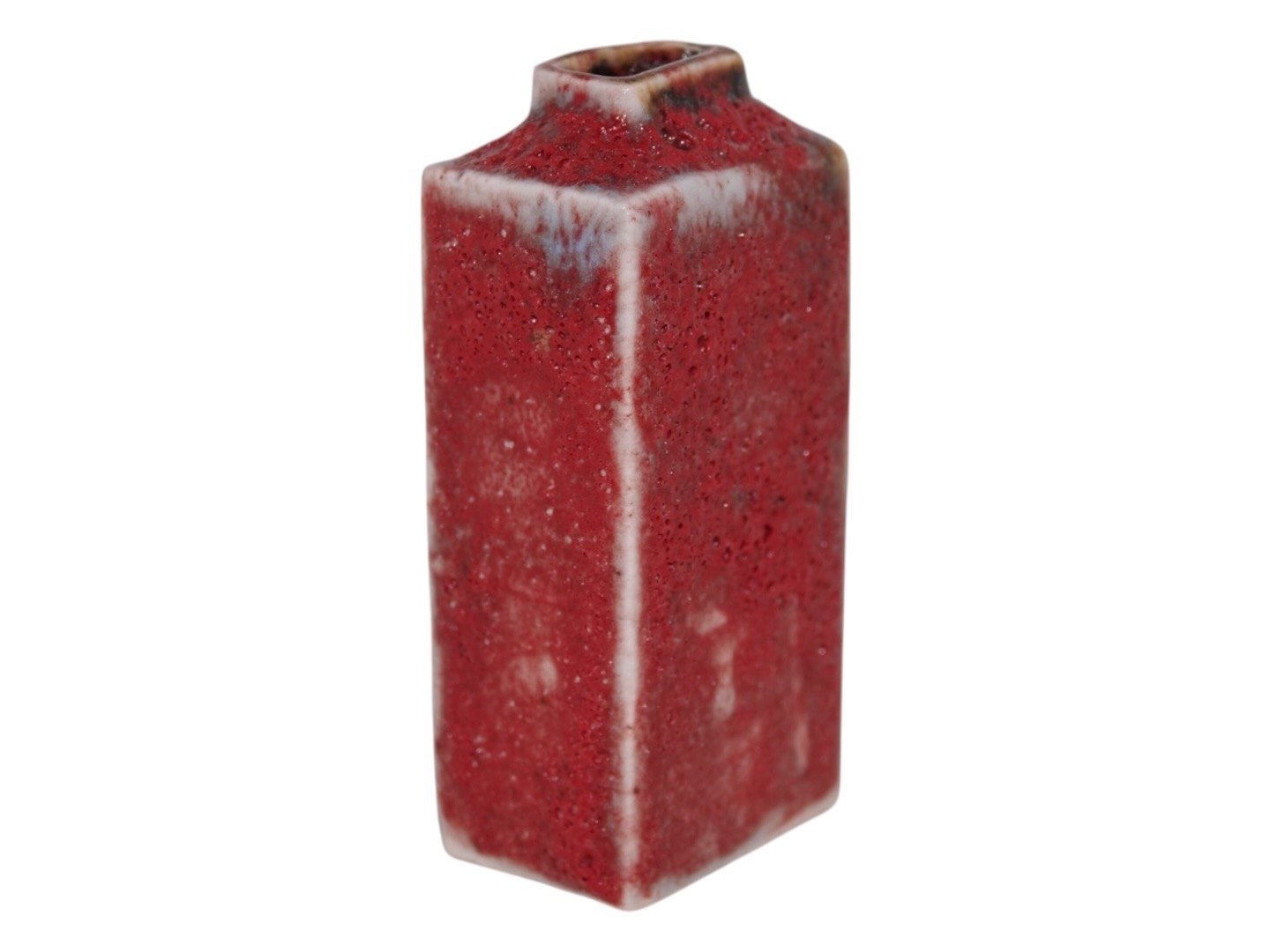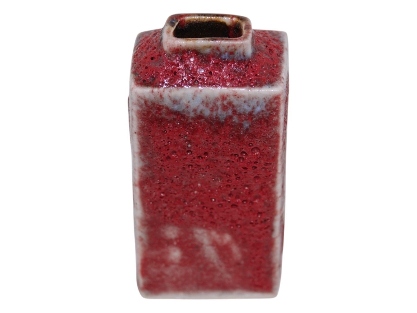 Bente Skjøttgaard keramik, miniature vase med rød lavaglasur.
