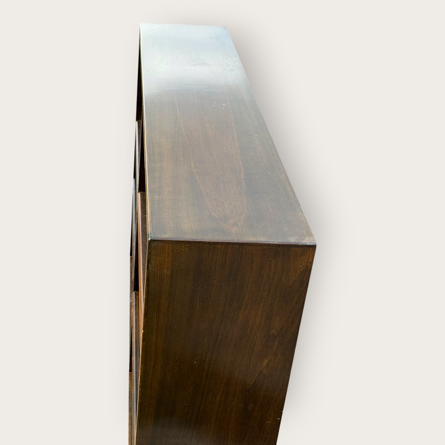 Bookcase in lacquered walnut veneer, Dimensions HxWxD 116x129x28cm *nice used condition*