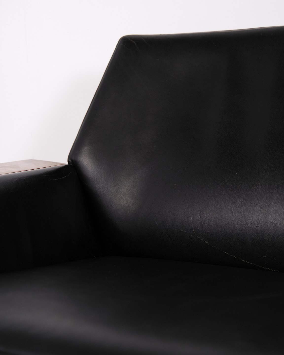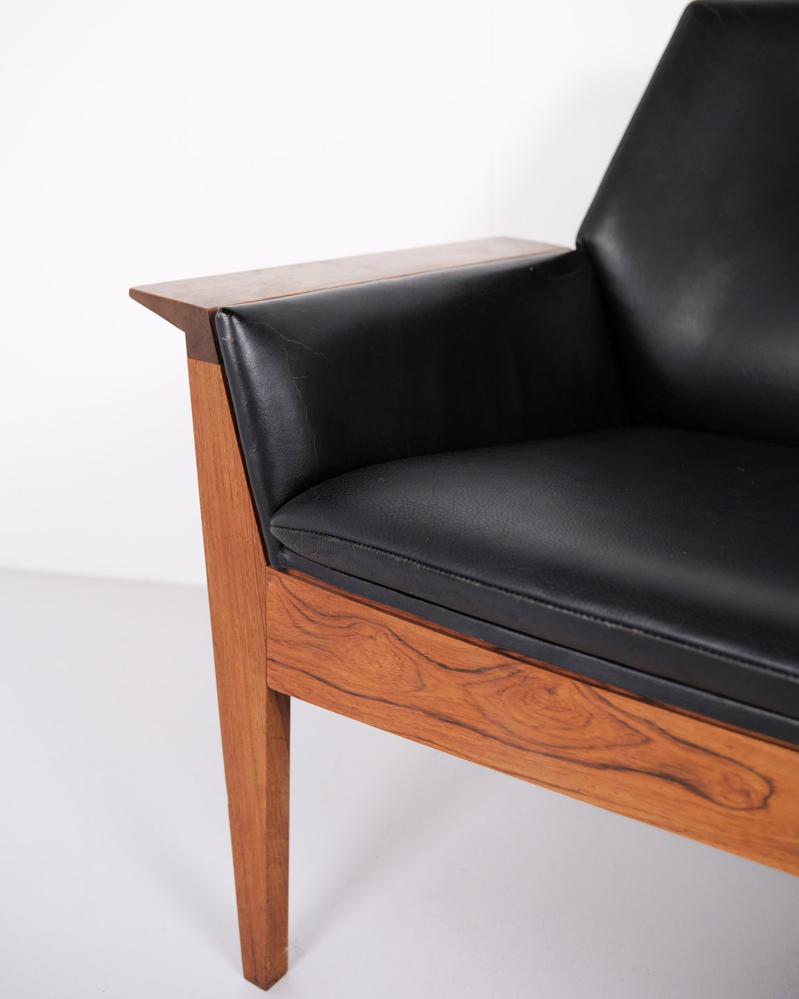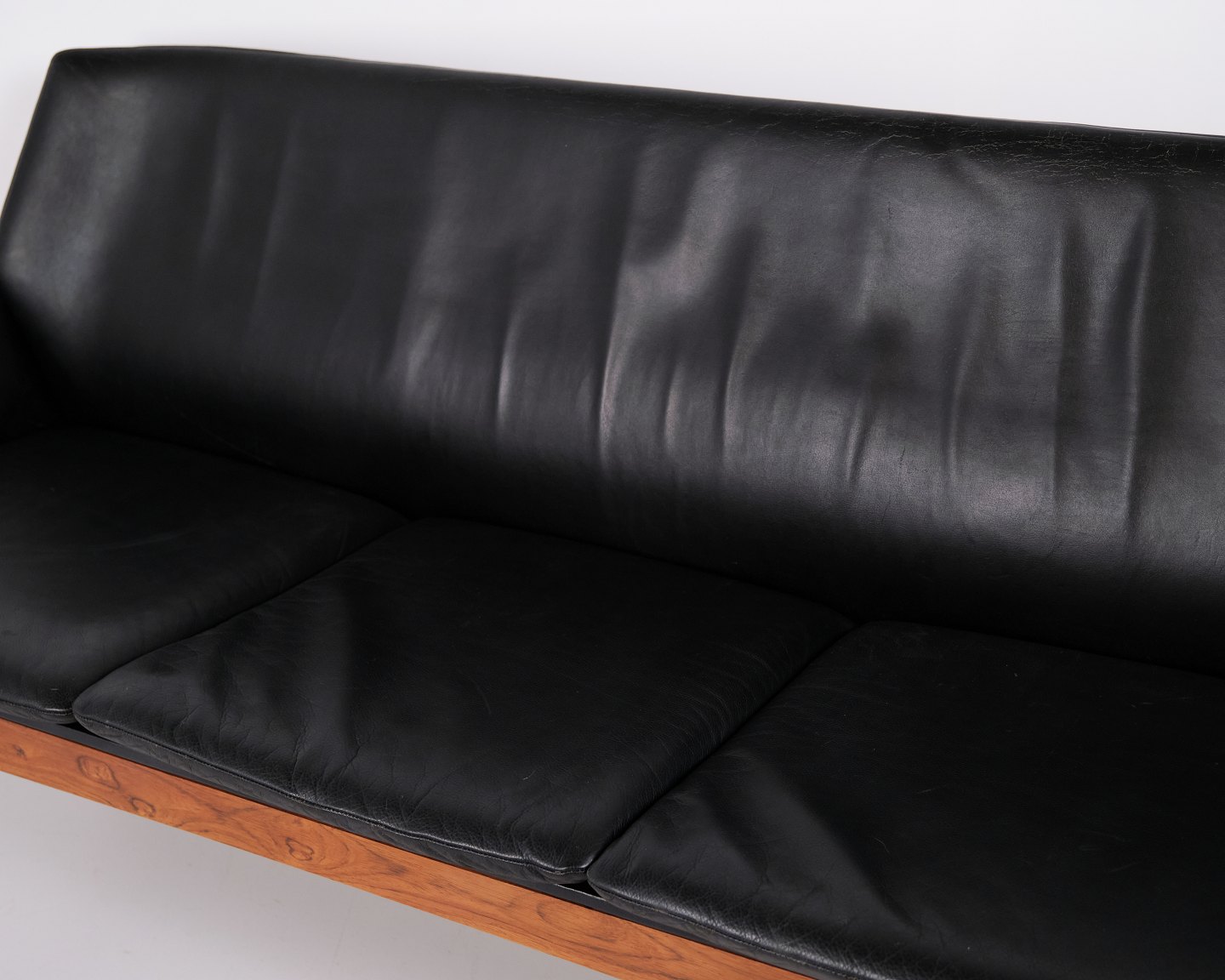 Tre Personers Sofa Model "Senior" i Rio Palisander og Originalt Sort Læder af Steen Østergaard for Jason Møbler, 1960erne