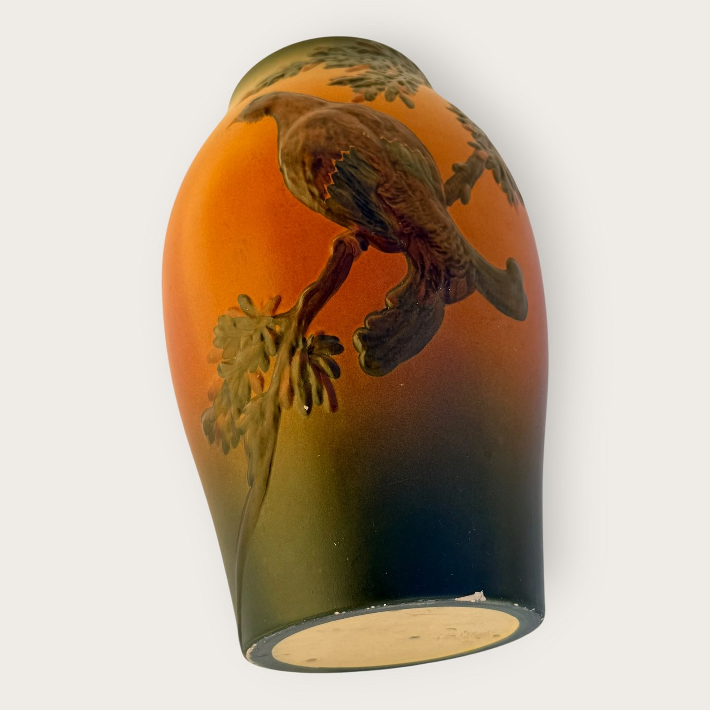 P. Ipsens enke, Vase, Med fugl, Nr. 450, 21cm høj *Enkelte små skrammer (se foto)*