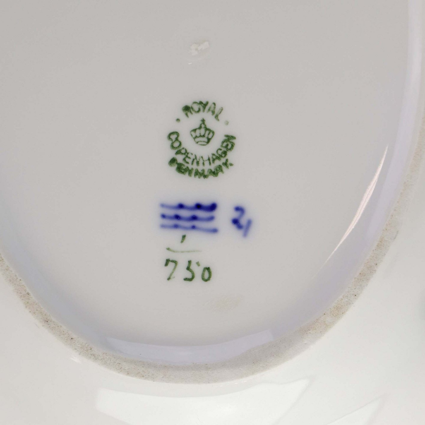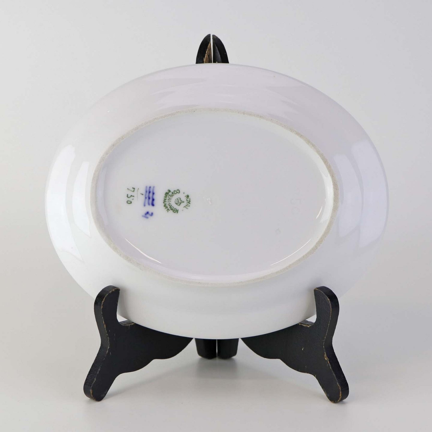 Ovalt fad i kongeligt porcelæn fra stellet Musselmalet Halvblonde. Nr. 1/750