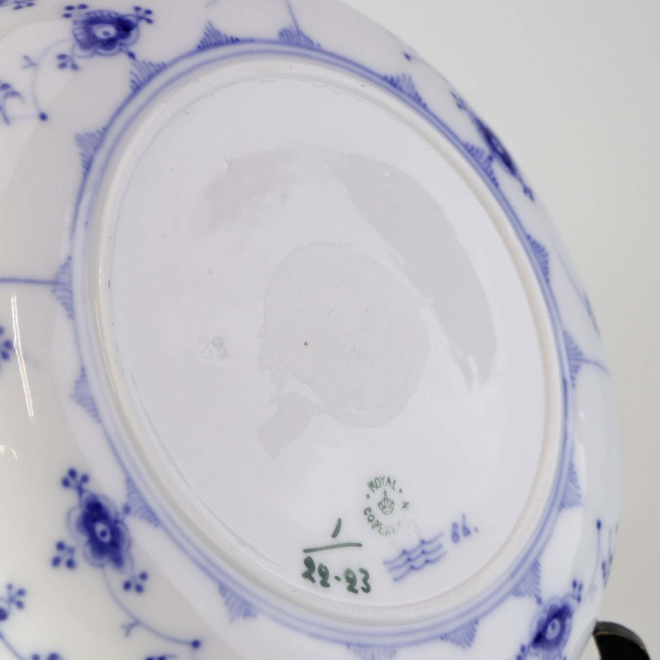 Rund skål til opsats i kongeligt porcelæn fra stellet Musselmalet riflet.