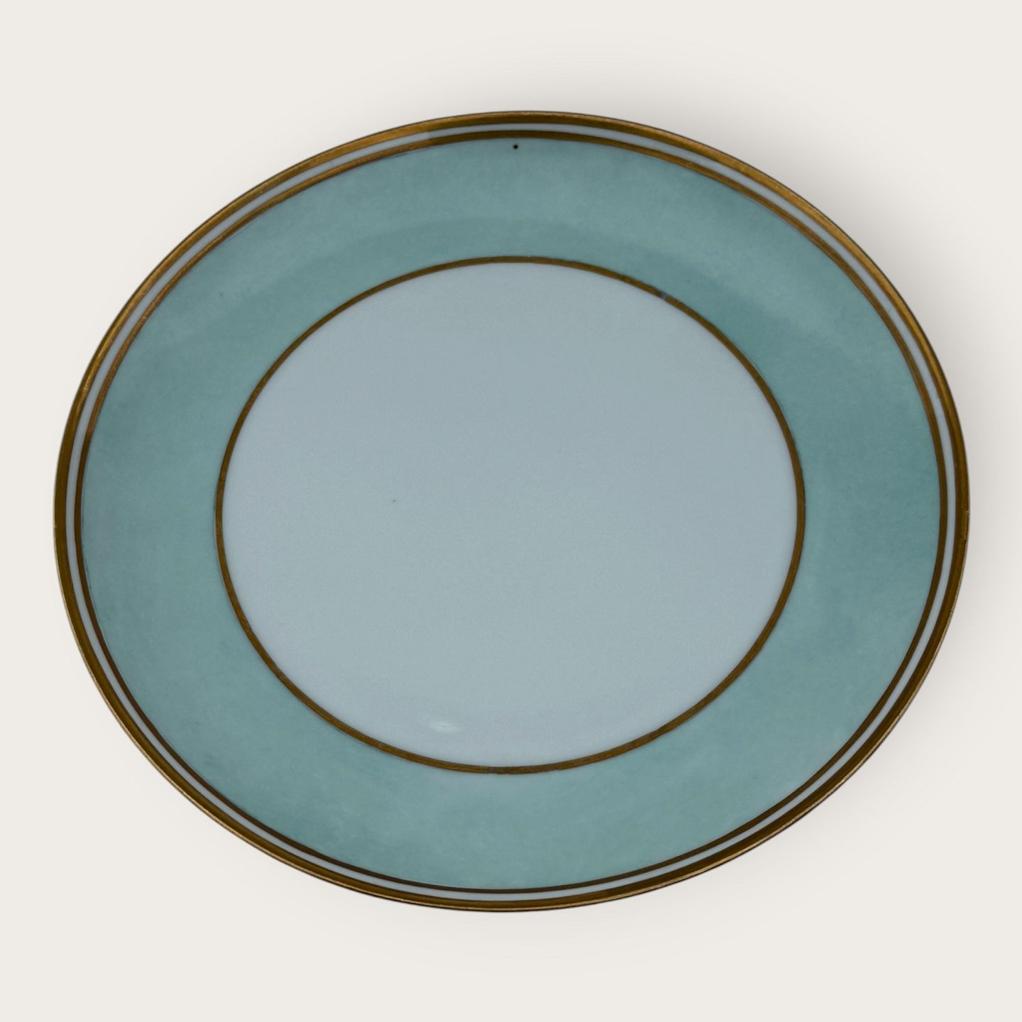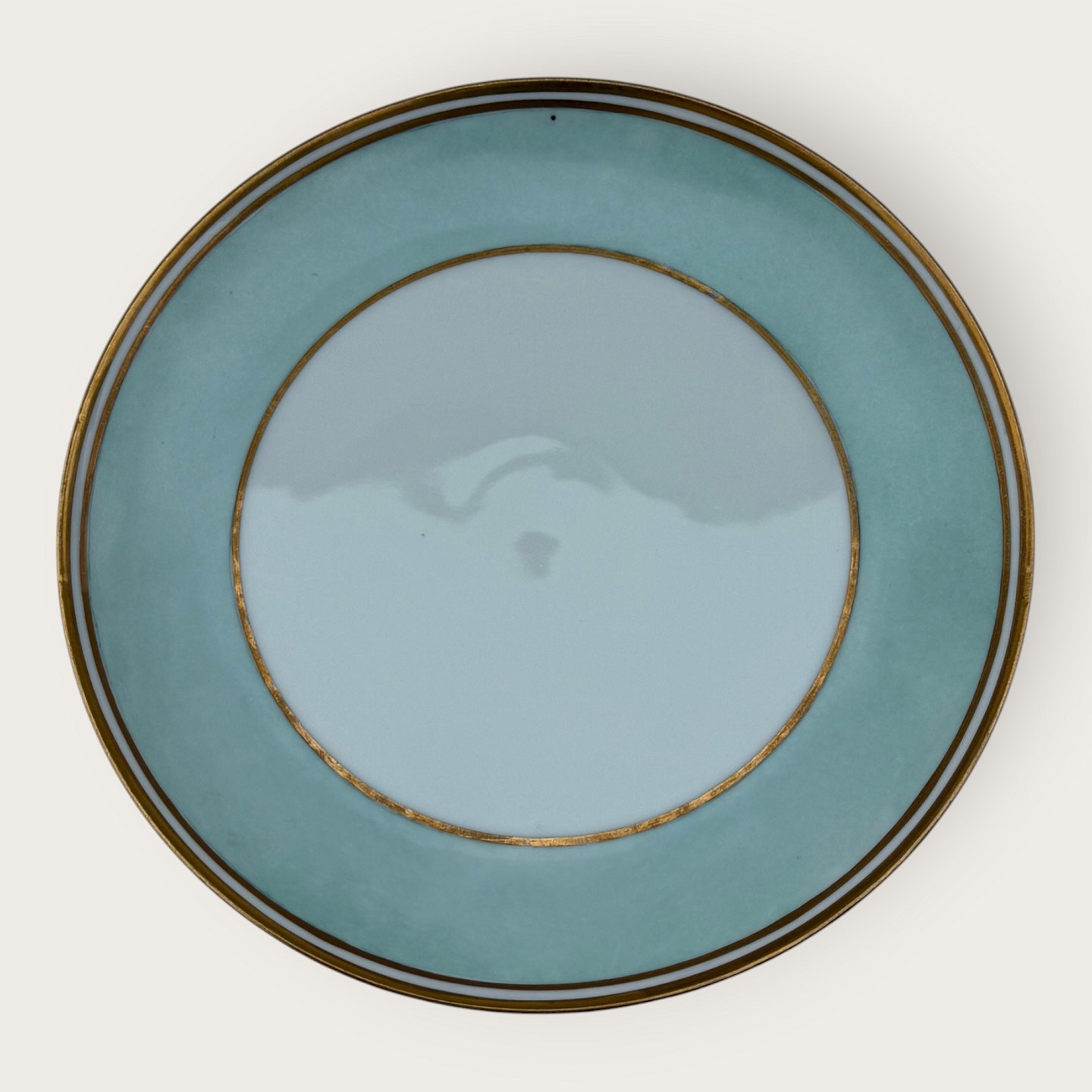 Bing & Grøndahl, Form 643 med bred turkis dekoration og guldkant, Frokosttallerken, #26, diameter 20,5cm, 2. sortering, *pæn stand*
