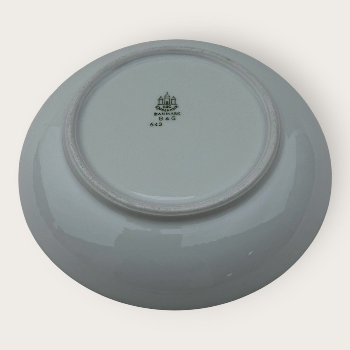Bing & Grøndahl, Form 643 med bred turkis dekoration og guldkant, Lille dyb tallerken / skål, diameter 17,5cm, højde 3,5cm, 1. sortering, *pæn stand*