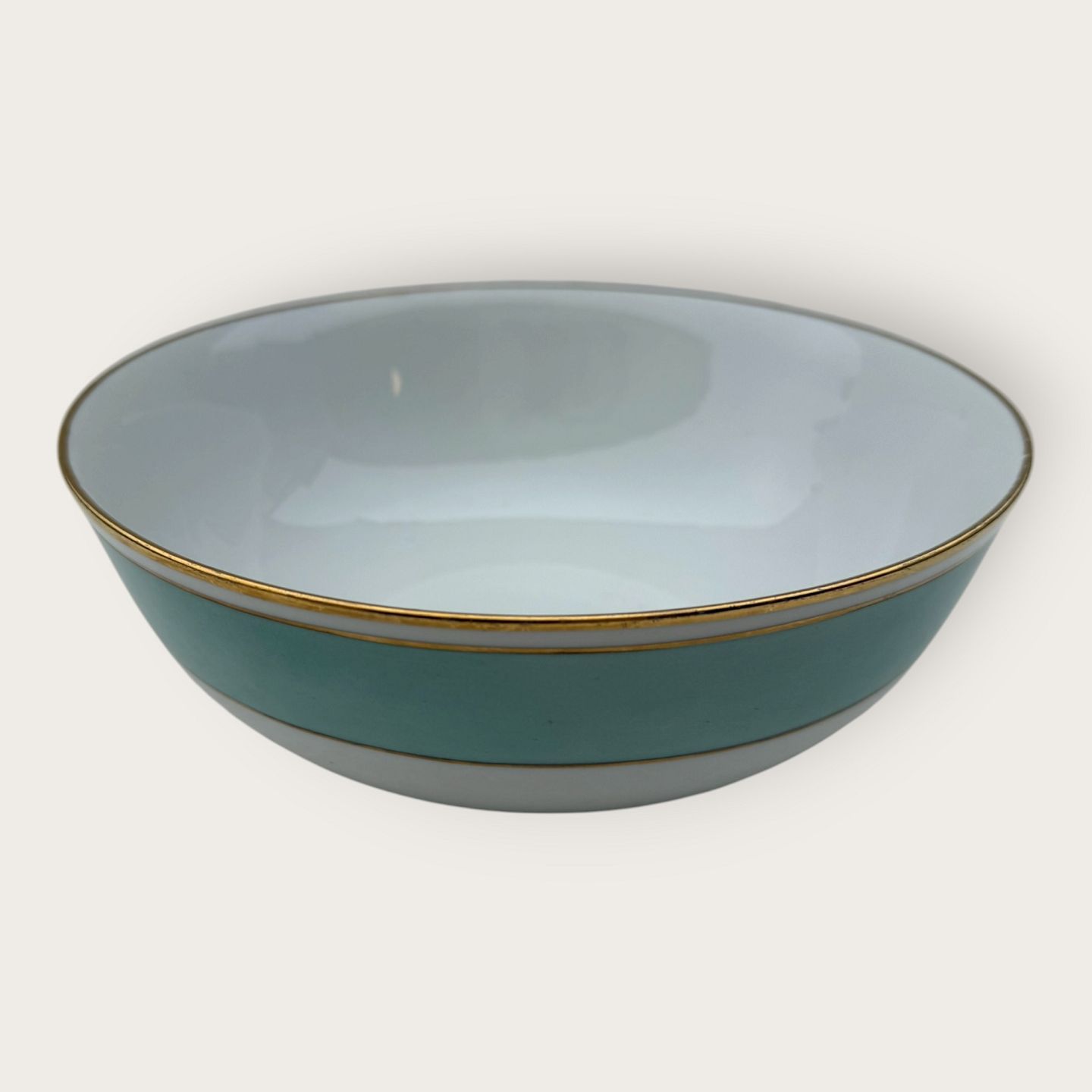 | Bing & Grøndahl, Form 643 med bred turkis dekoration og guldkant, Serveringsskål, #43, 8cm høj, bredde 21cm, 2. sortering, *Pæn stand*