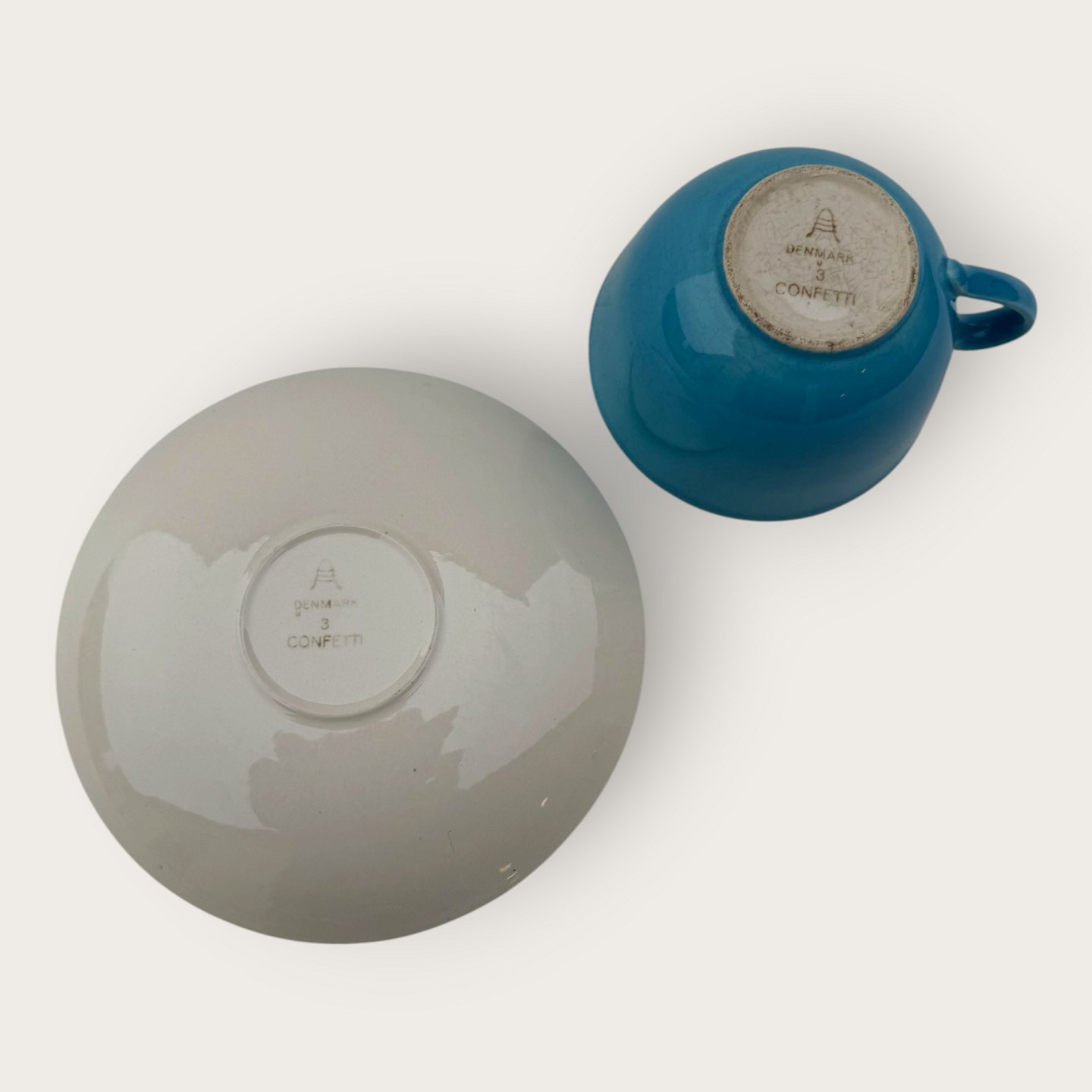 | Royal Copenhagen, Aluminia, Confetti, tekop, Turkisblå, kop 9,5cm i diameter og 6cm høj *Fremstår med en del krakeleringer indvendigt i koppen*