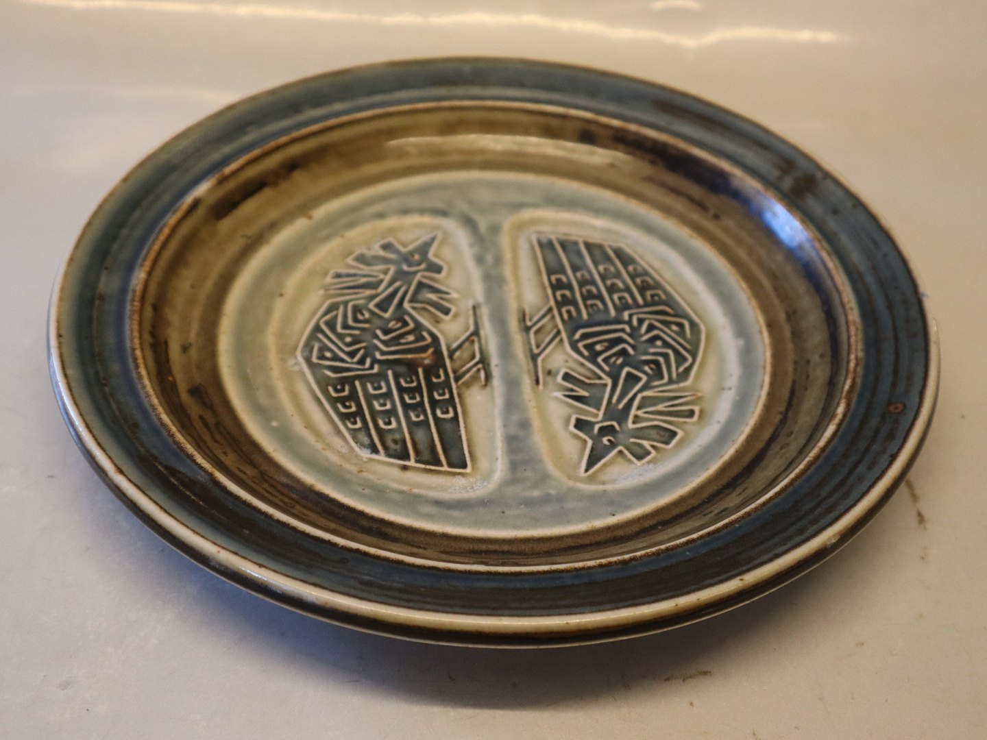 21847 Kgl. Bordskål 26 cm August 1961 Jørgen Mogensen JM Stiliserede fugle Royal Copenhagen stentøj I fin og hel stand