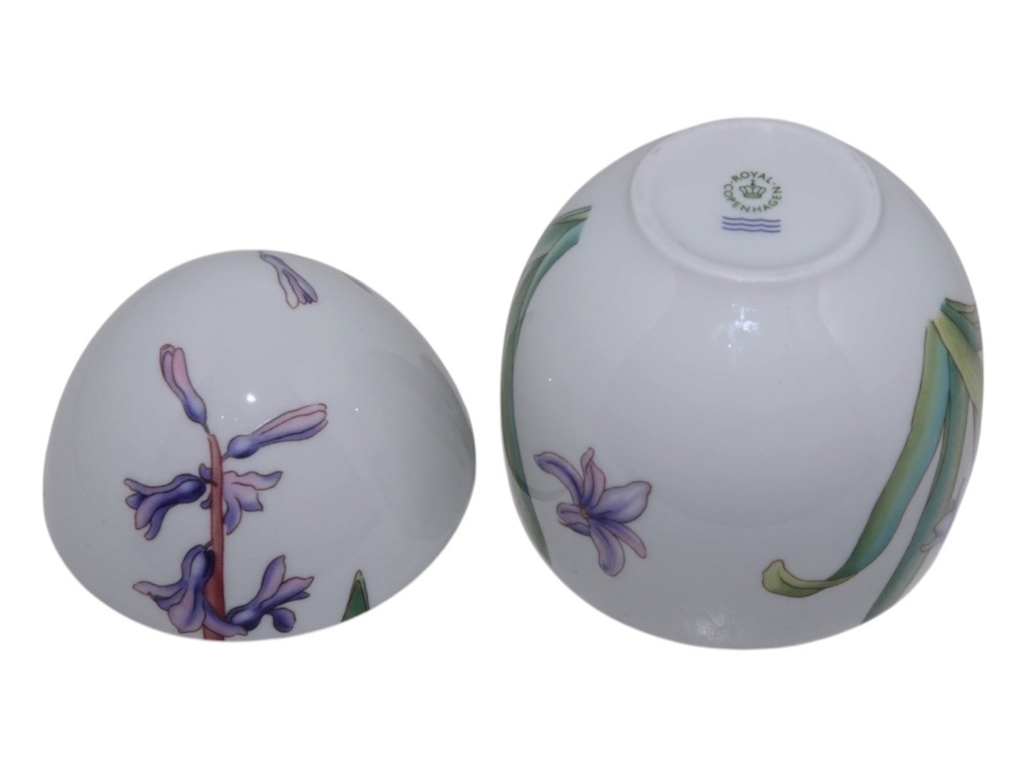 Royal Copenhagen påskeæg bonbonniere dekoreret med blå hyacint.