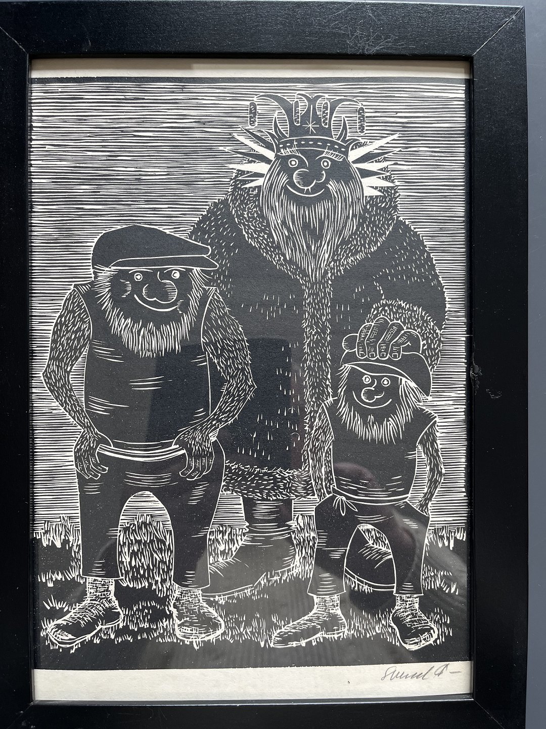 2 kompositioner med Trolde, nisser, træer, dyr mm.