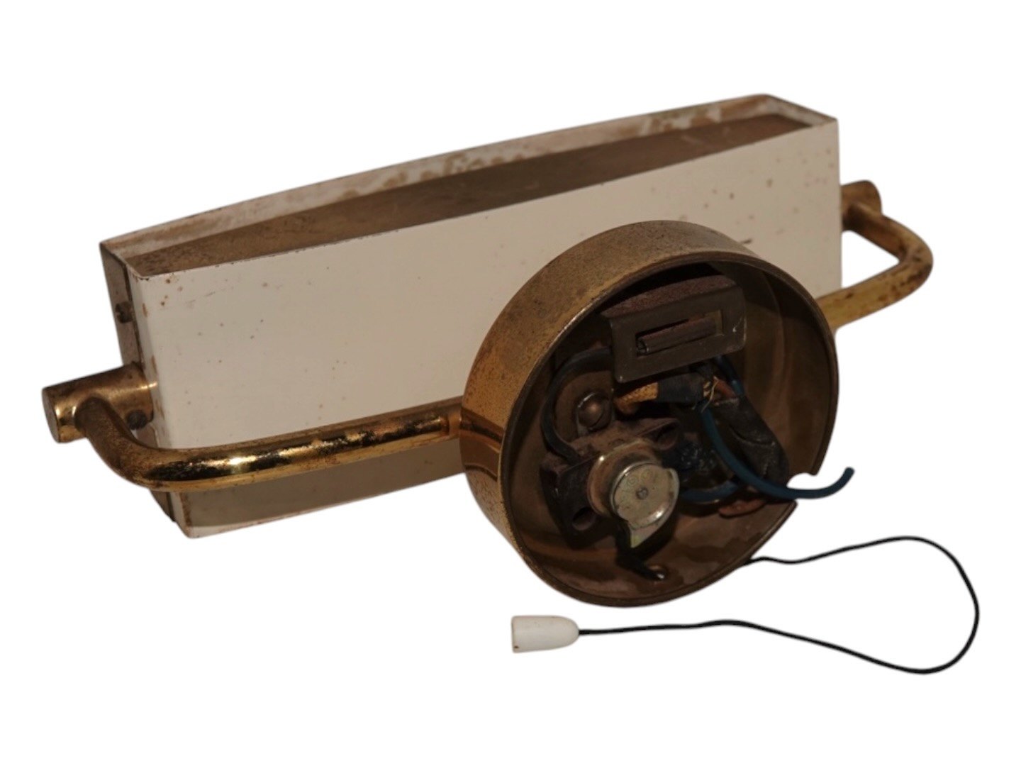Lille messing drejbar væglampe med snoretræk fra ca. 1950.