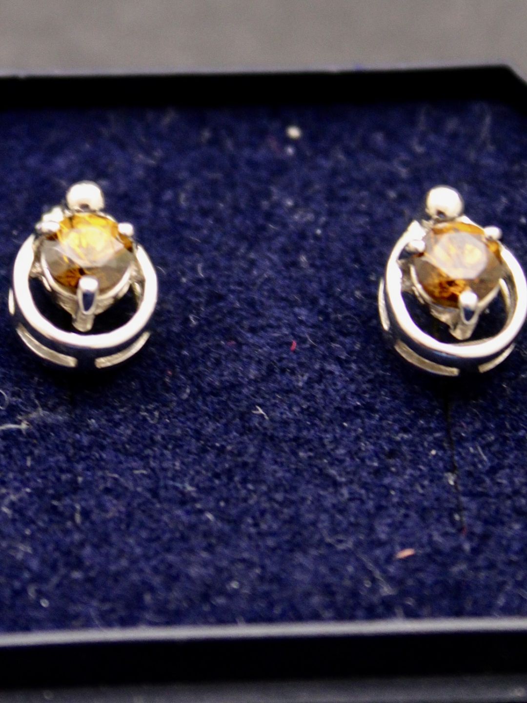 Sterling sølv øre stikker 1 x 0,8 cm. med gul topas emne nr. 636280