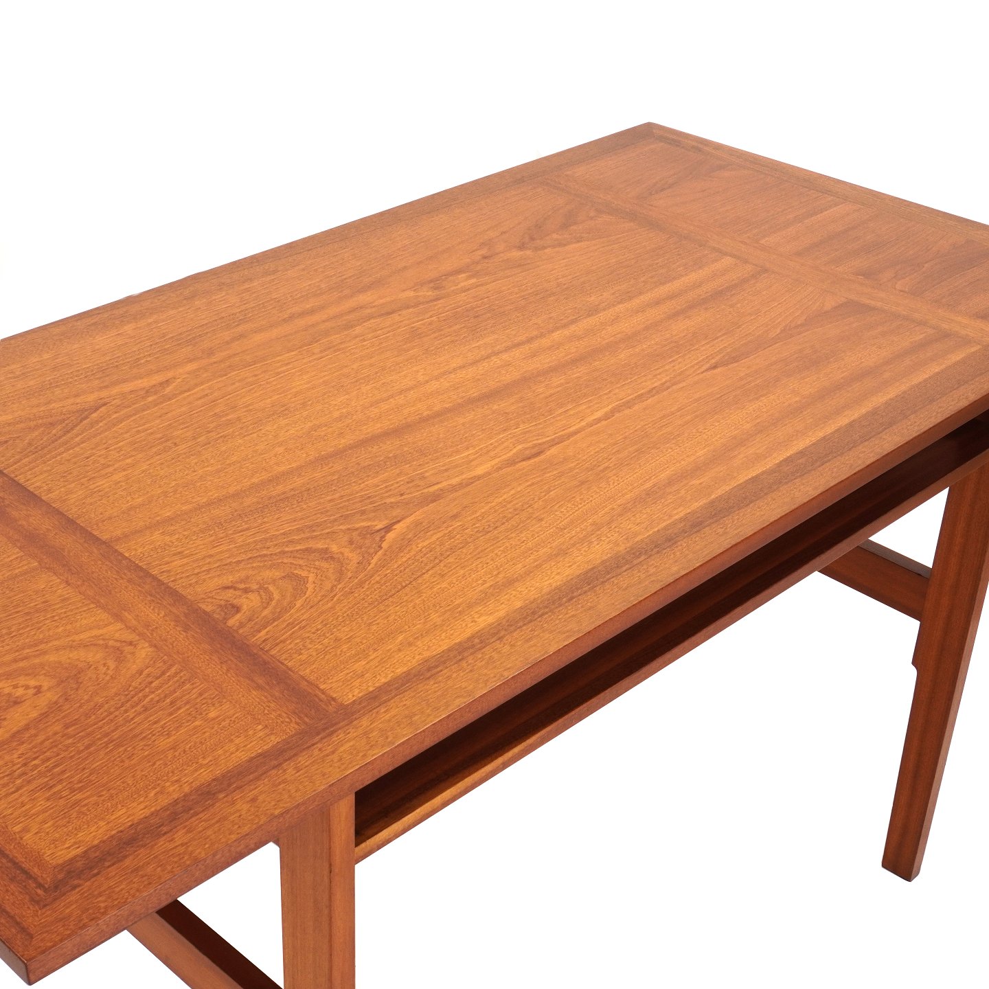 Mogens Koch skrivebord udført i maghogni. Under skriveplade hylde til papirer. Præsenteret 1957 fremstillet af Rud. Rasmussen. H: 74cm. Plade: 76x151,5cm