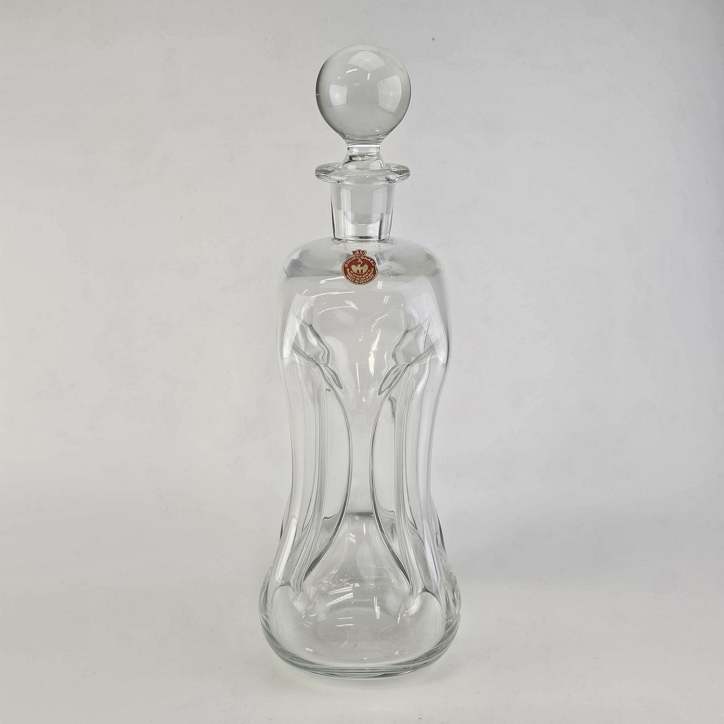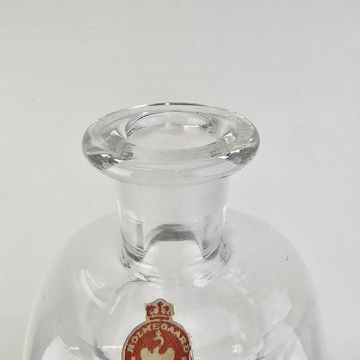 Klukflaske i klart glas med tilhørende prop med original mærke