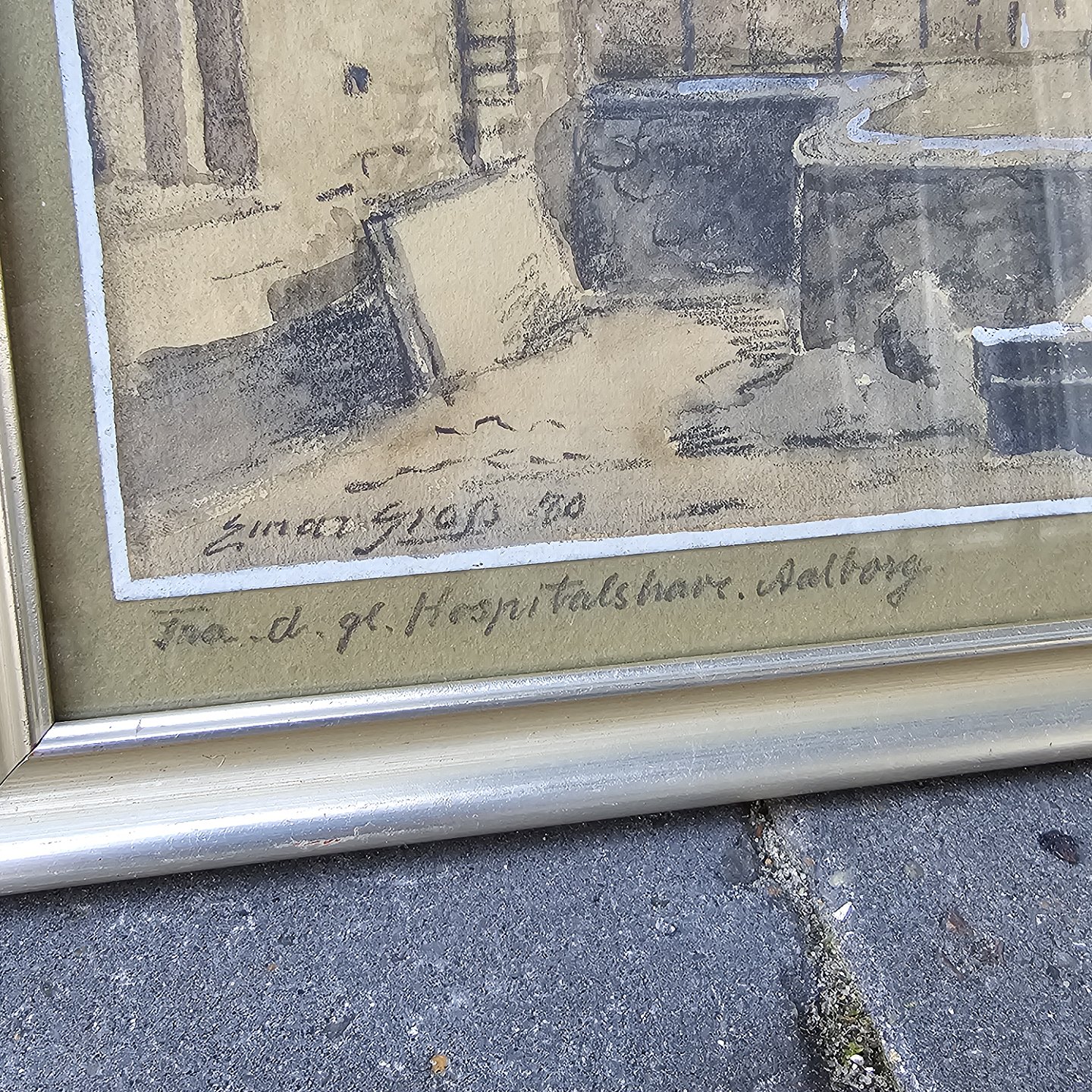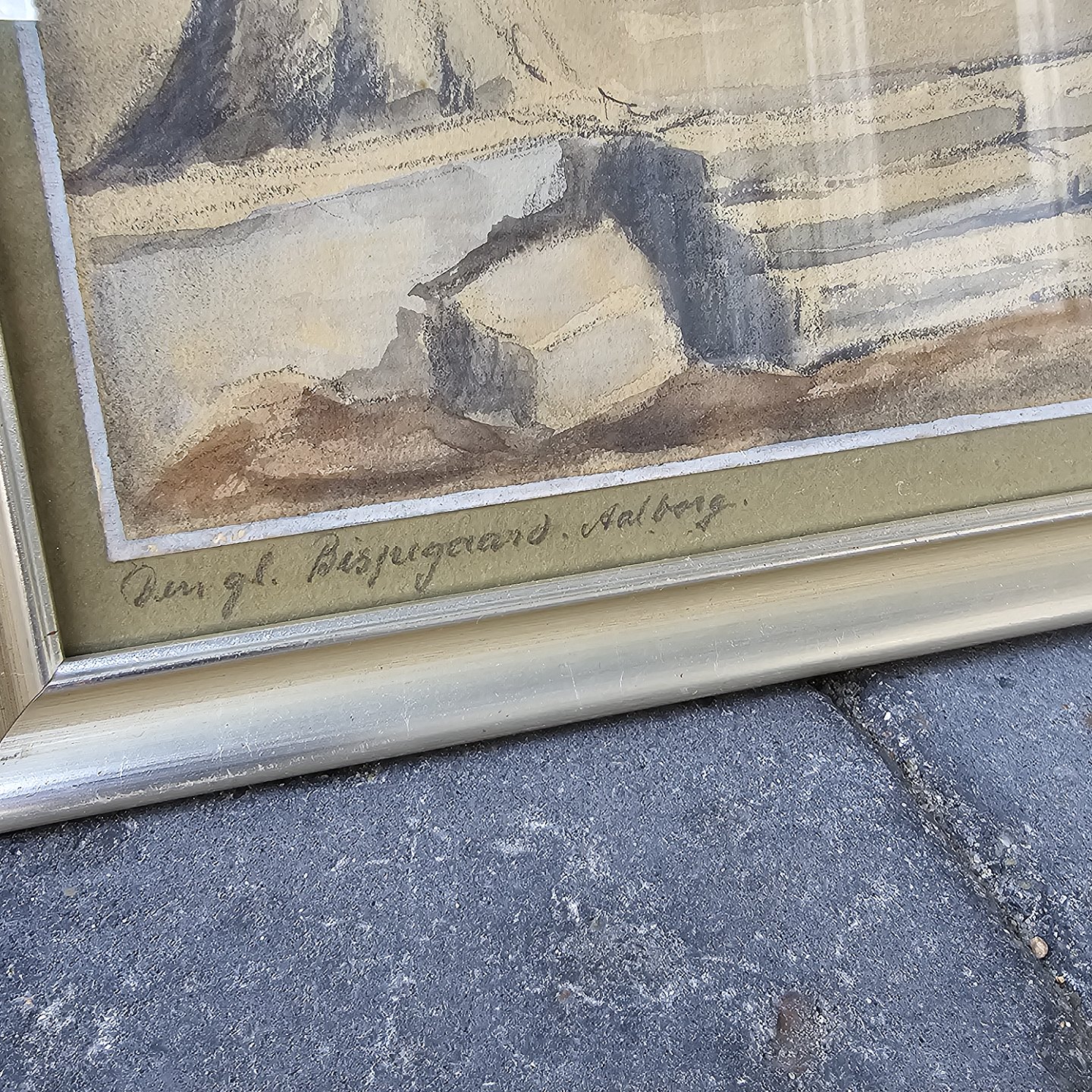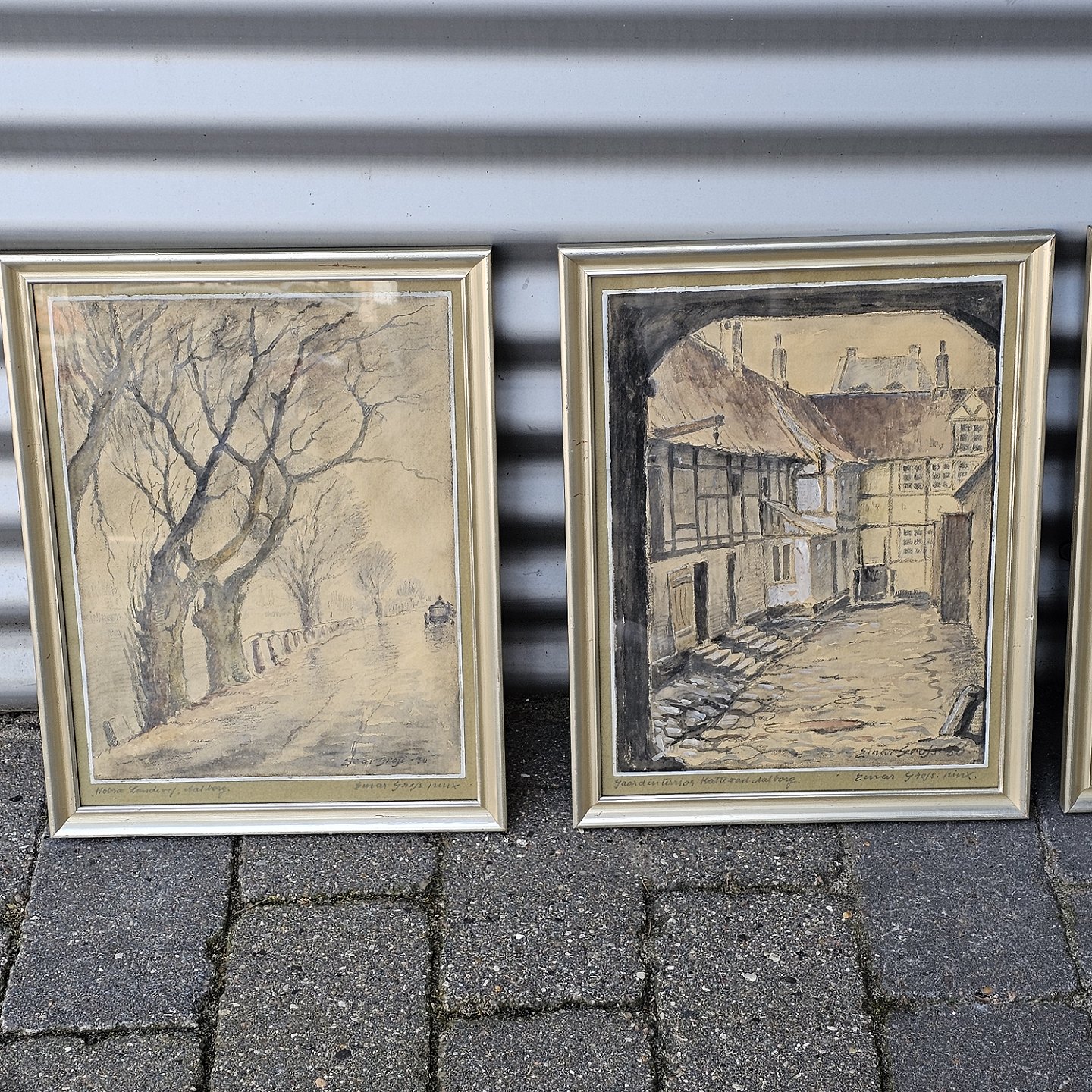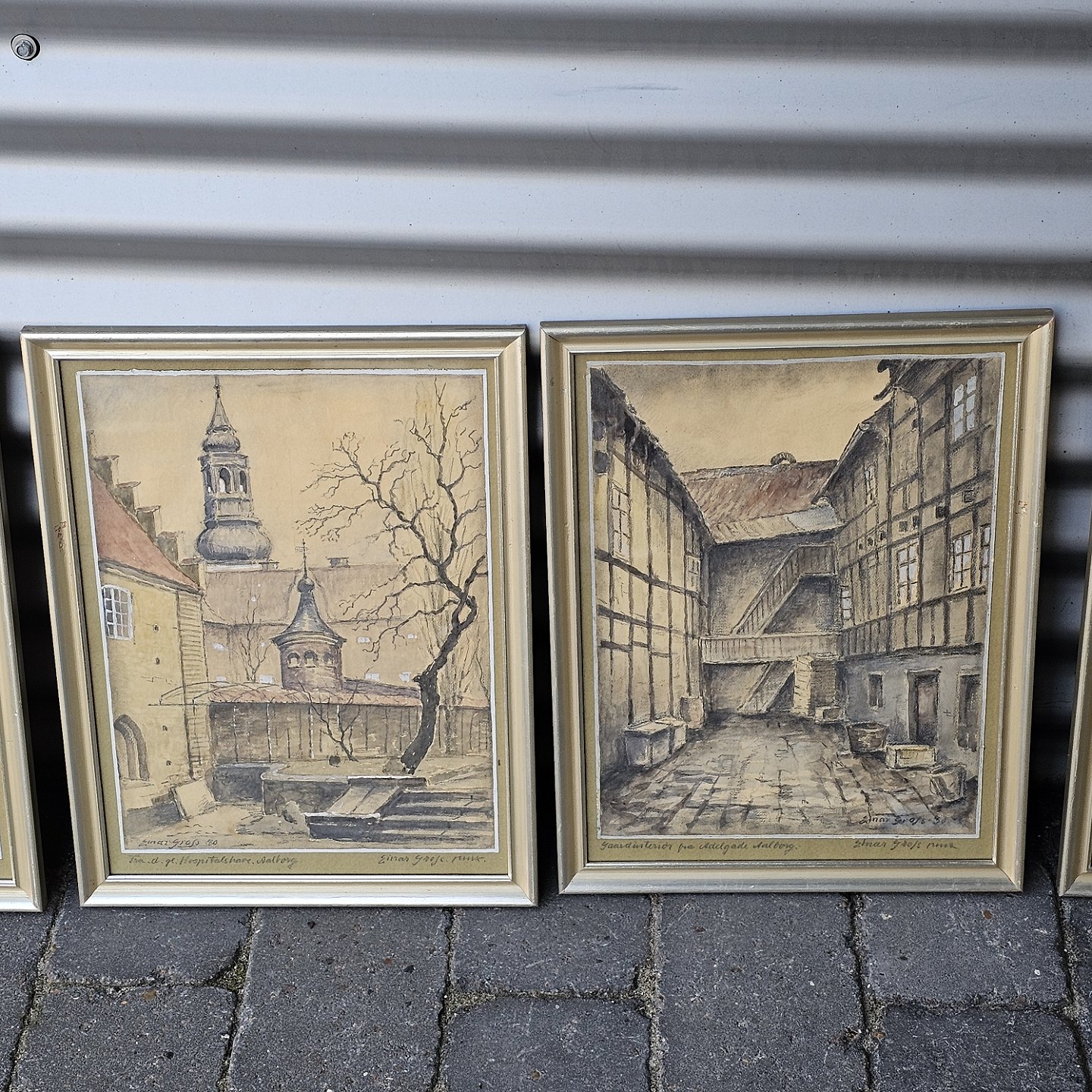 Sæt af seks akvareller med motiver fra Aalborg by, monteret i trærammer og alle signeret