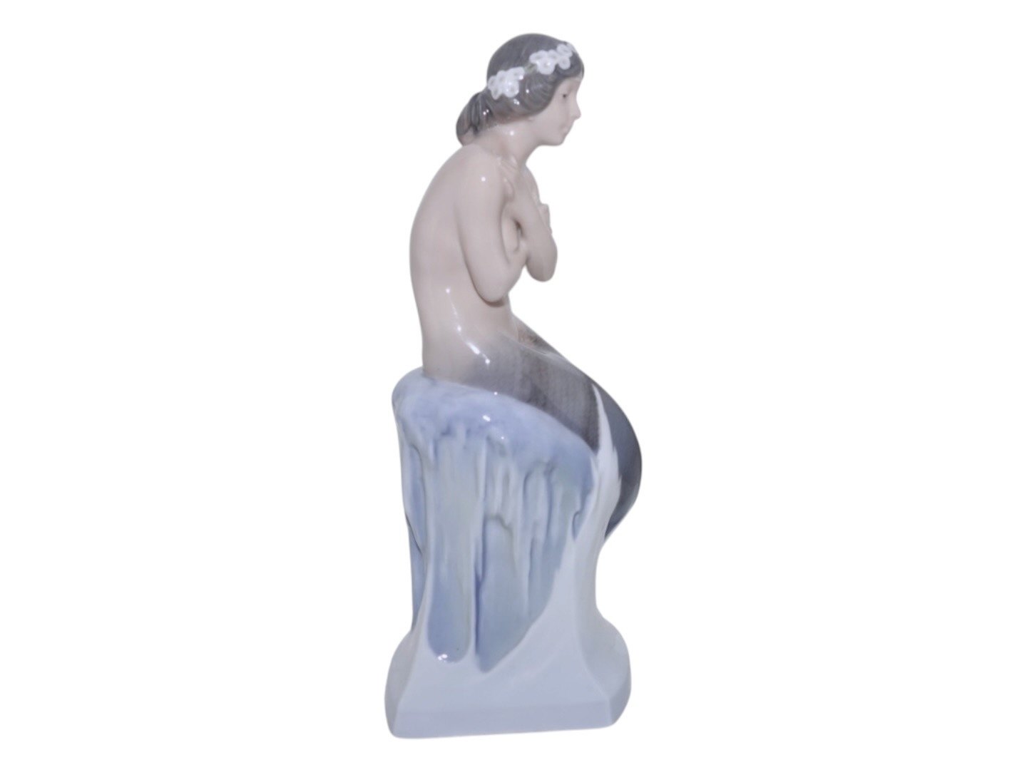 Royal Copenhagen figur af Den Lille Havfrue siddende på is.