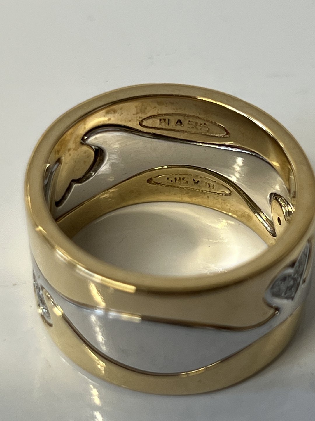 14 karat Damering, med indlagte brillanter, i rød og hvidguld.