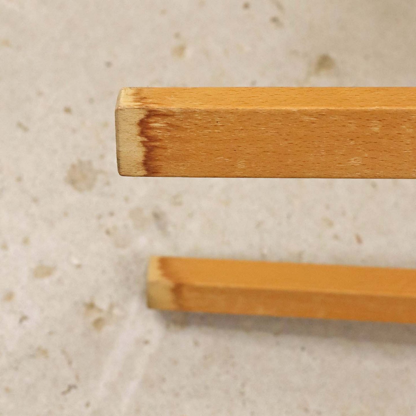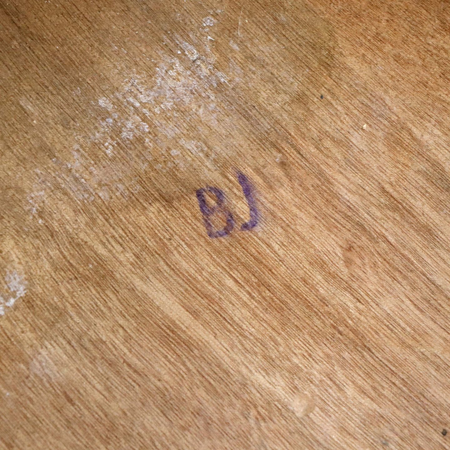 Fremstår med to revner i teaktræsrammen samt brugsspor på zinkplade og rammens yderside samt vandmærker nederst stellet.