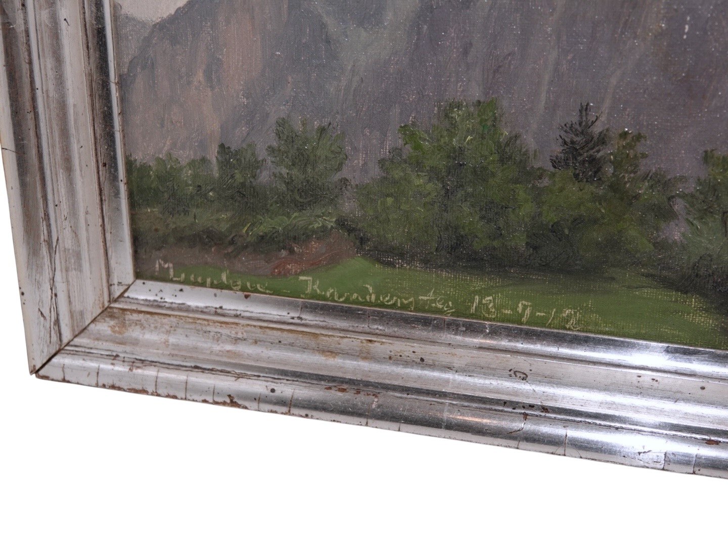 Maleriet forestiller en bjergformation, sandsynligvis fra en af Luplaus mange rejser til udlandet. Luplau malede ofte landskaber fra Sydeuropa. Hun har blandt andet udført bjerglandskaber nær Genèvesøen i Schweiz og ved Gardasøen i Italien.