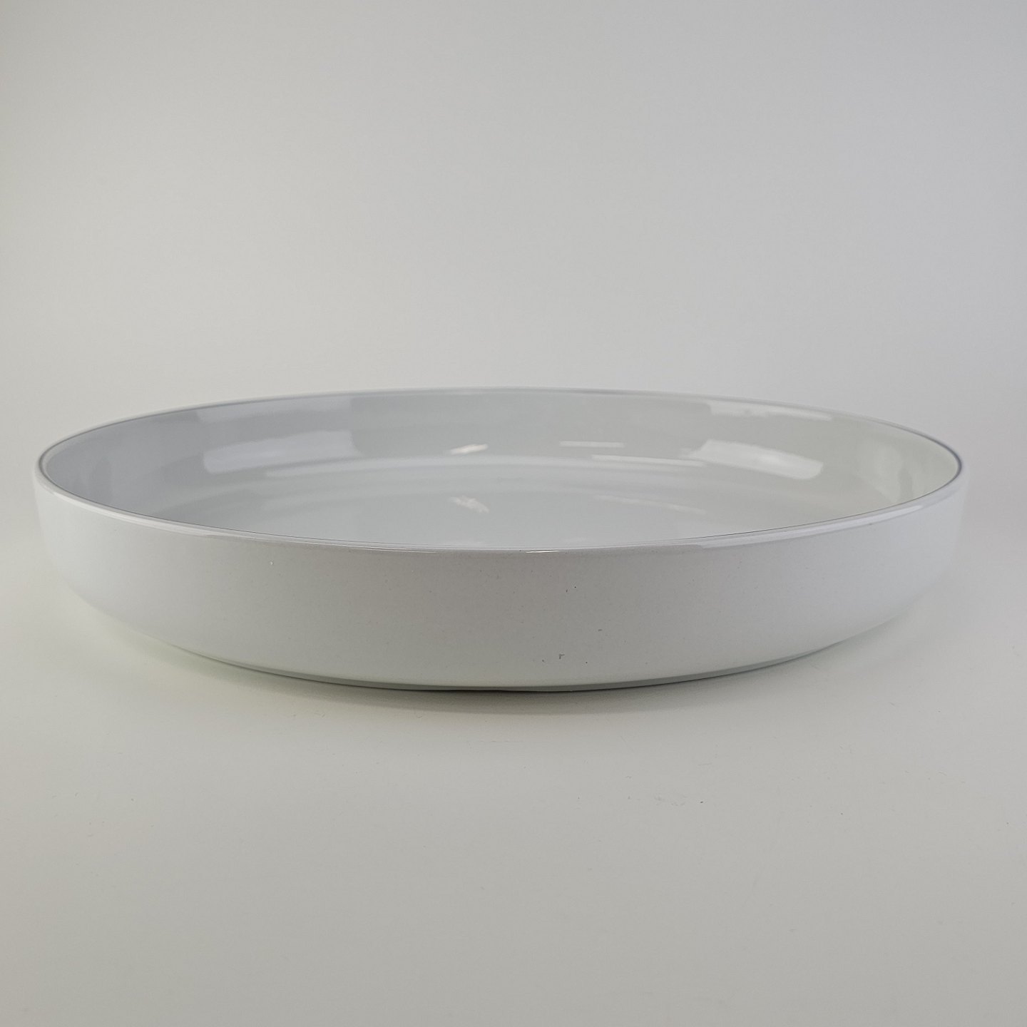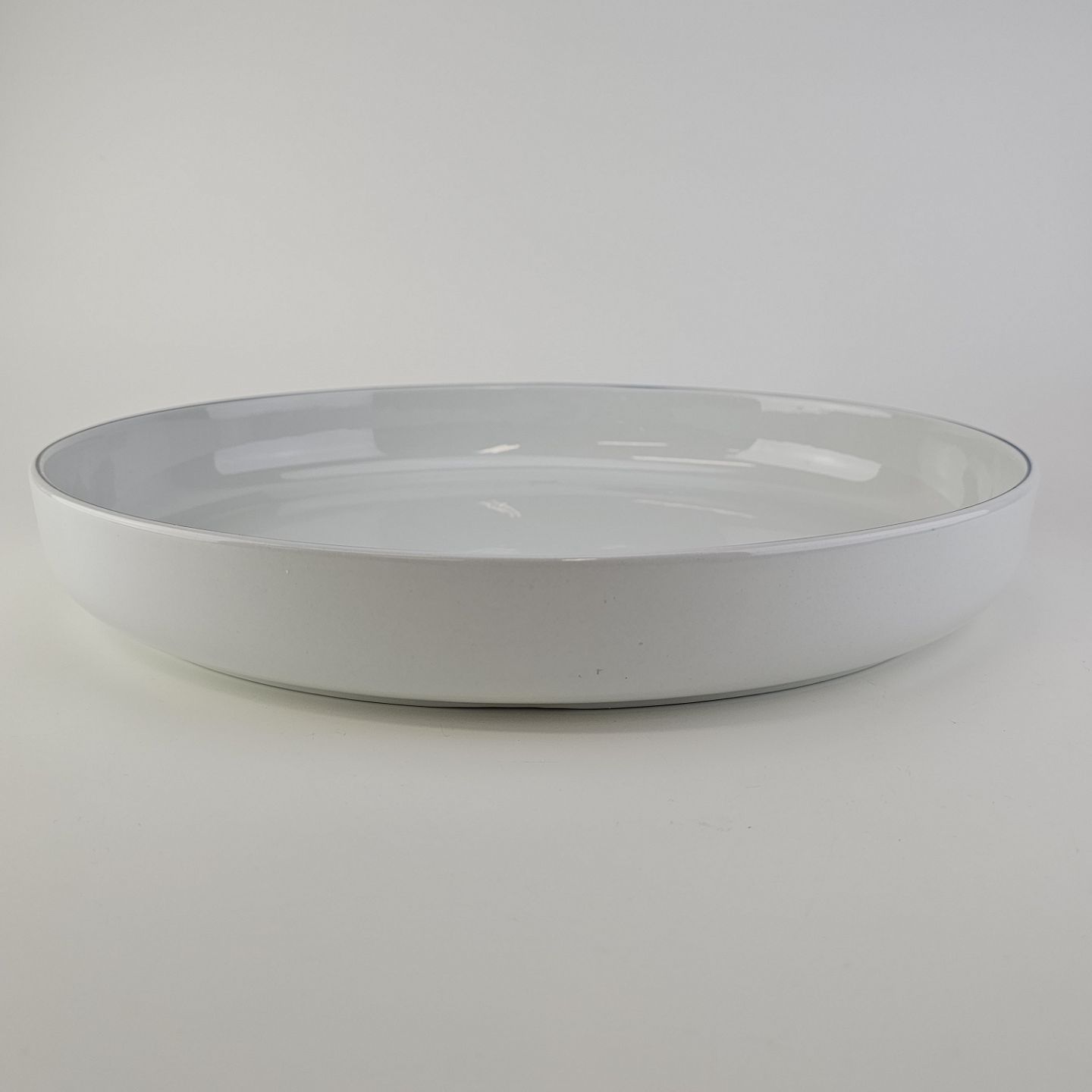 Blåkant er stel i hvid fajance med dekoration af en blå streg på kanten