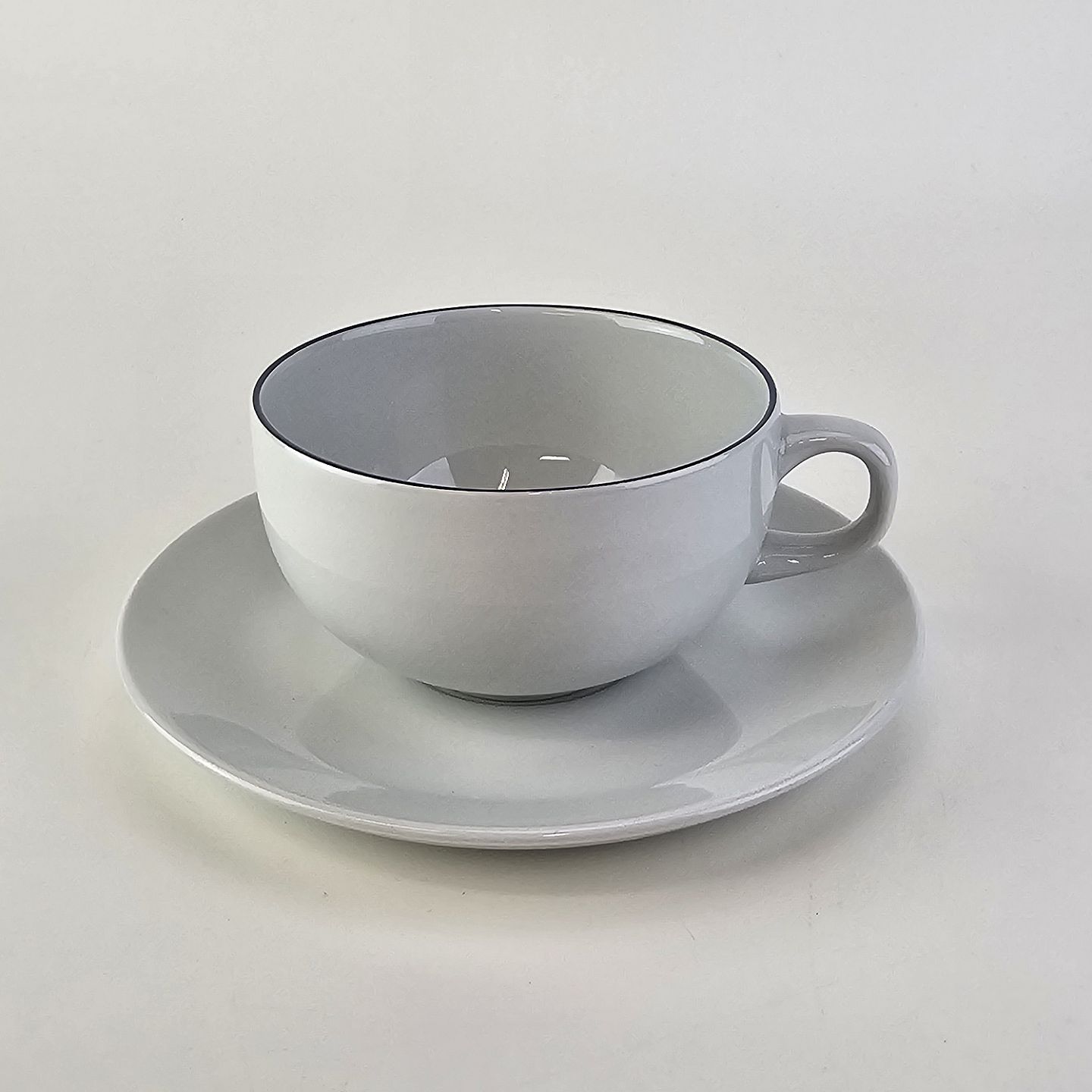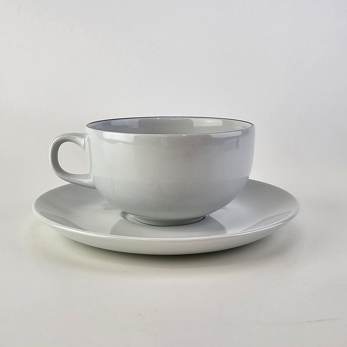 Kop med underkop i fajance fra stellet Blåkant