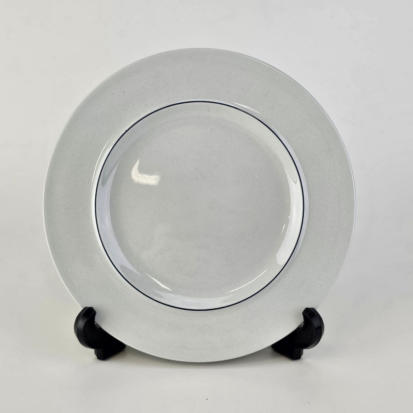 Blåkant er stel i hvid fajance med dekoration af en blå streg på kanten
