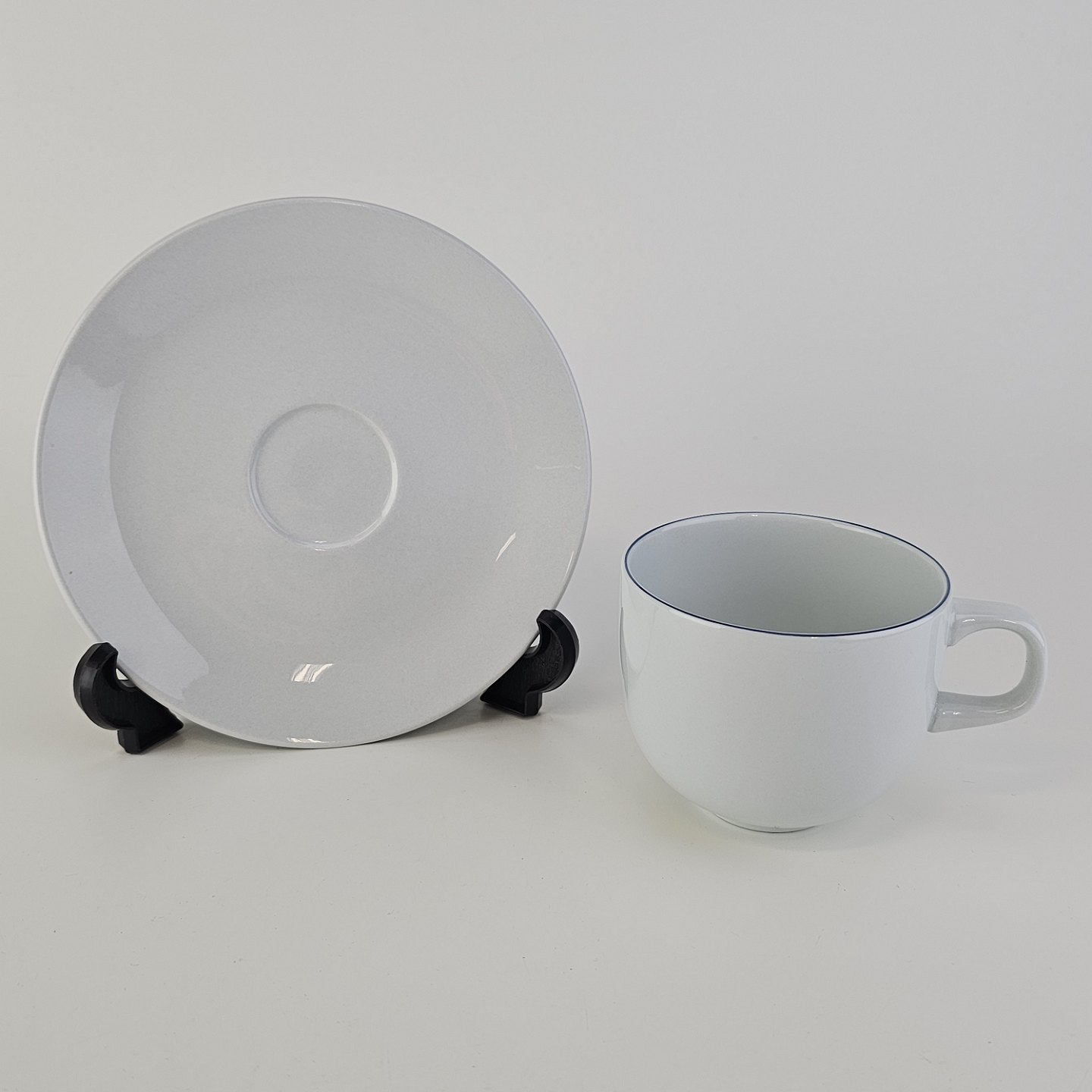 Kaffekop med underkop i fajance fra stellet Blåkant