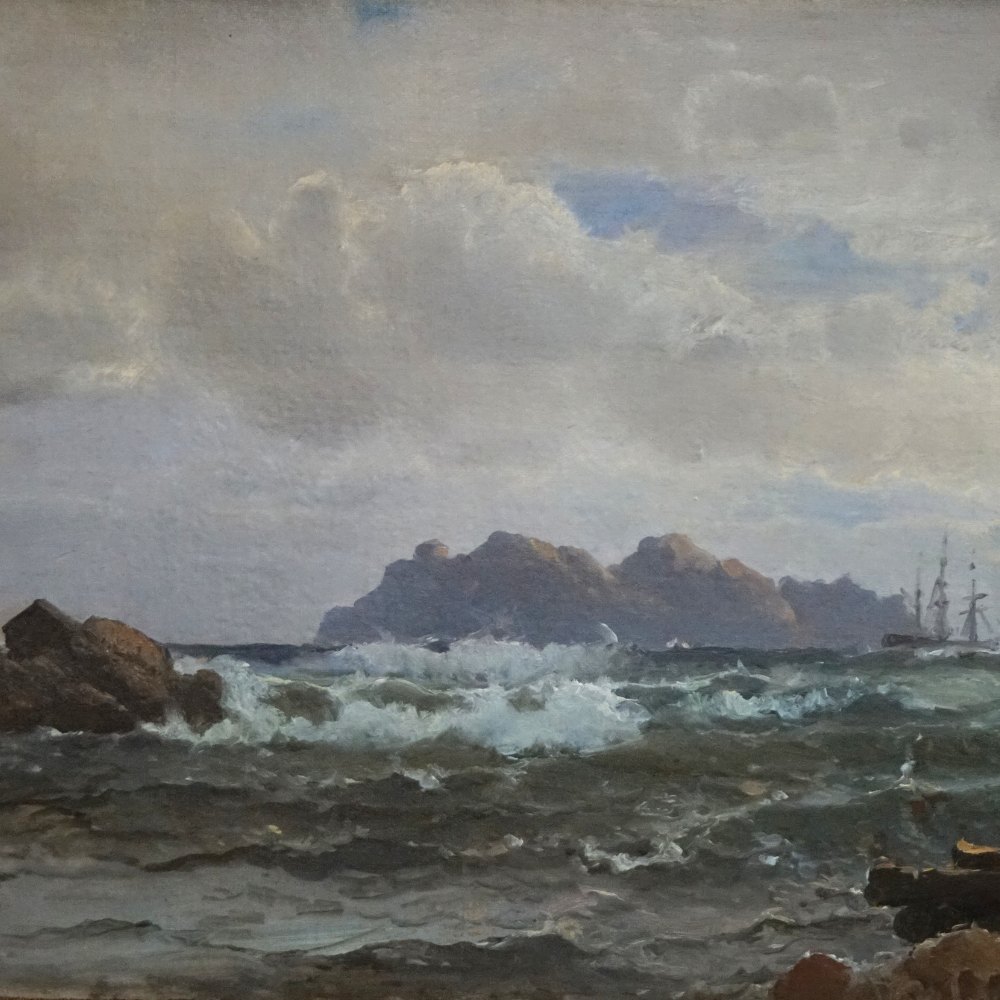 C. F. Sørensen; Mariner maleri, motiv ved Mandal i Norge, 1873