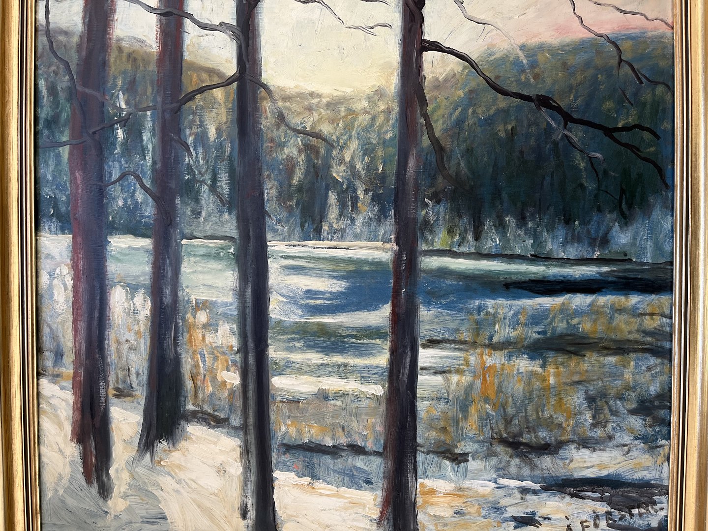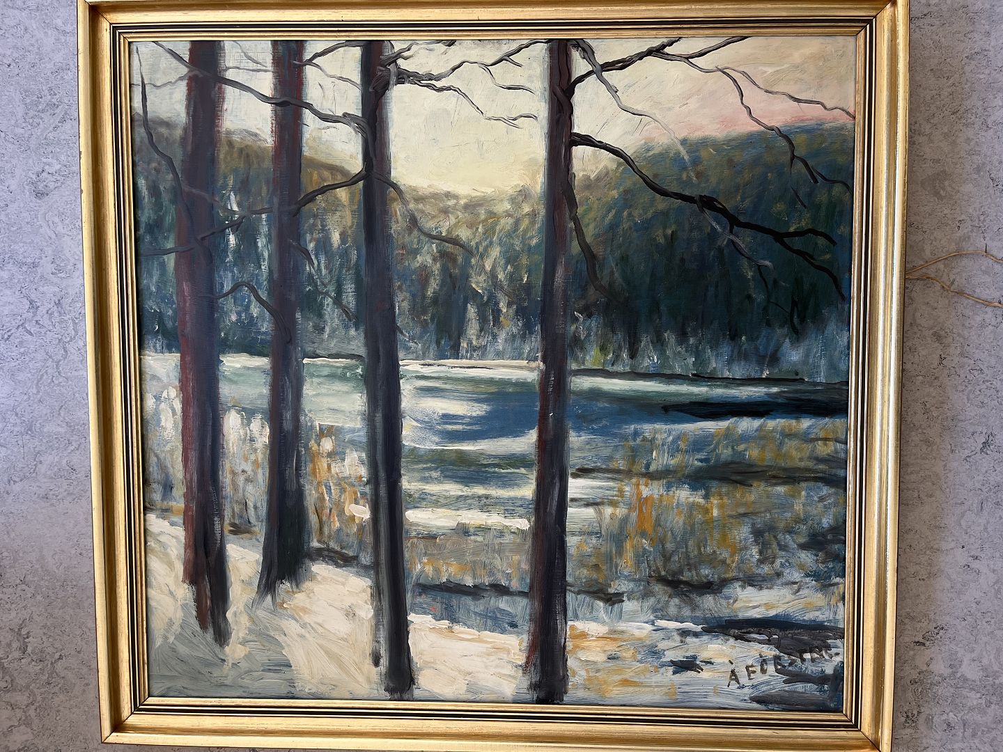 Maleri af A. Förster - Vinterparti med nøgne træer