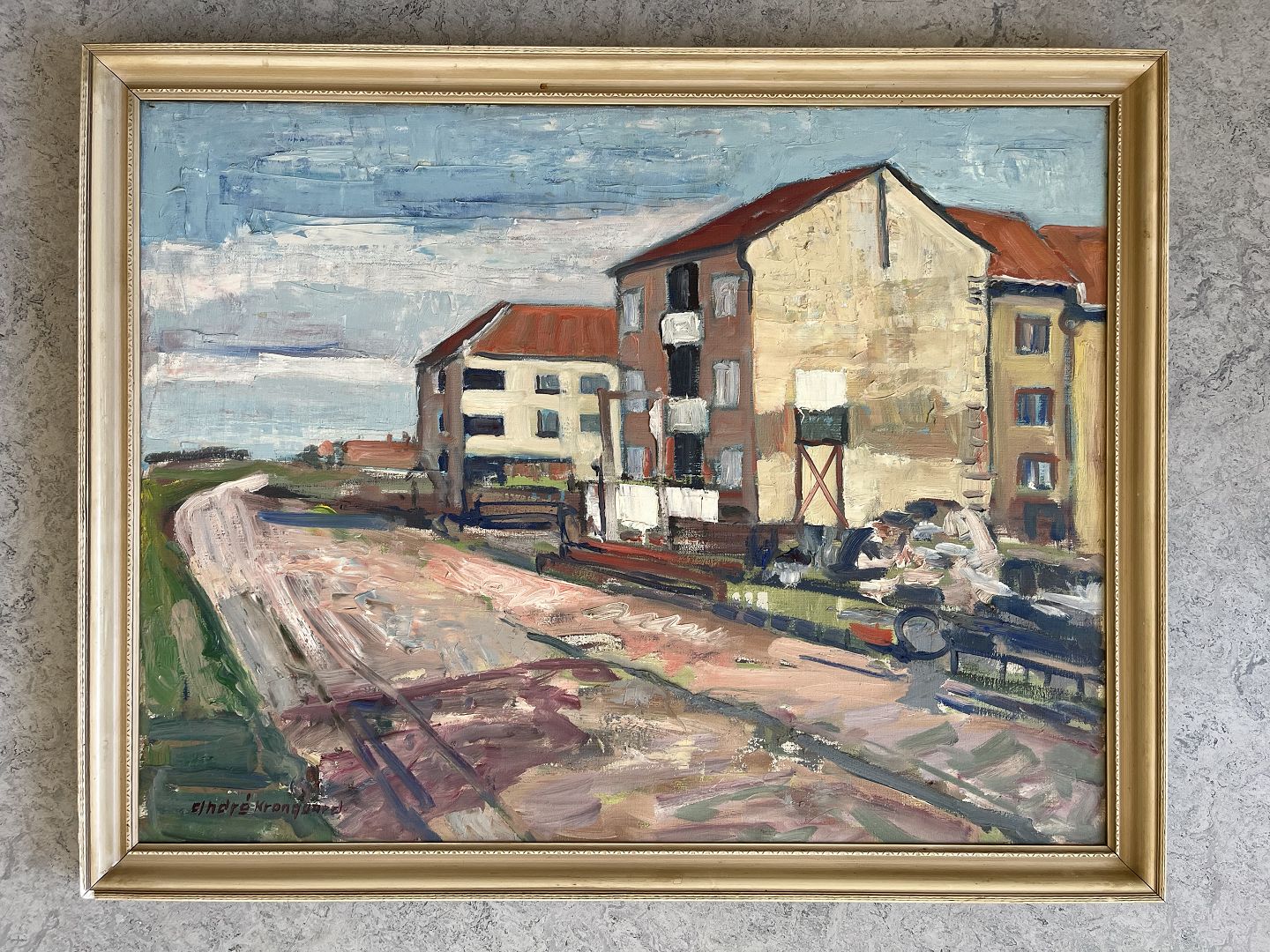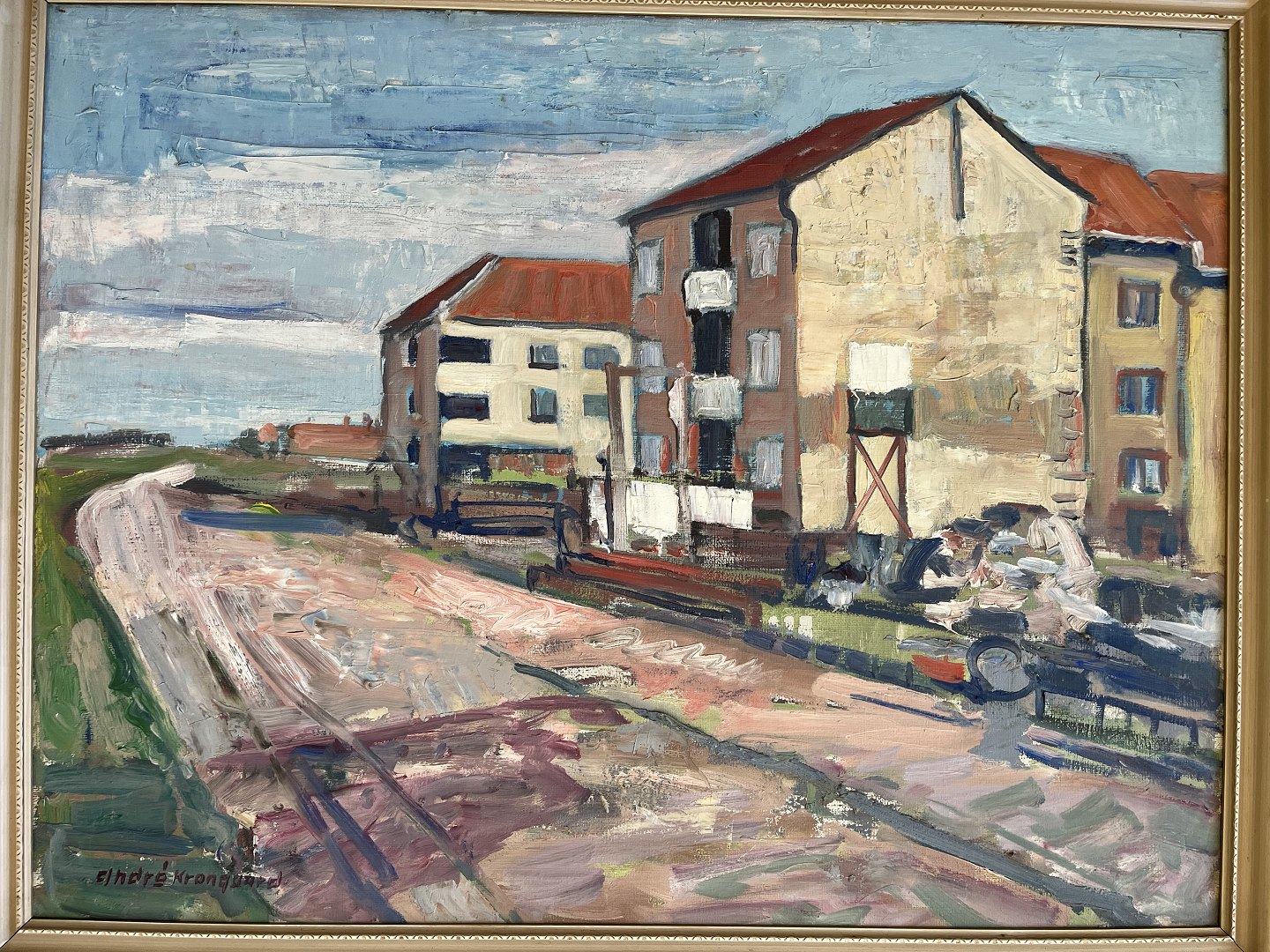 Maleri af André Krongaard - Vej med bolig karréer.