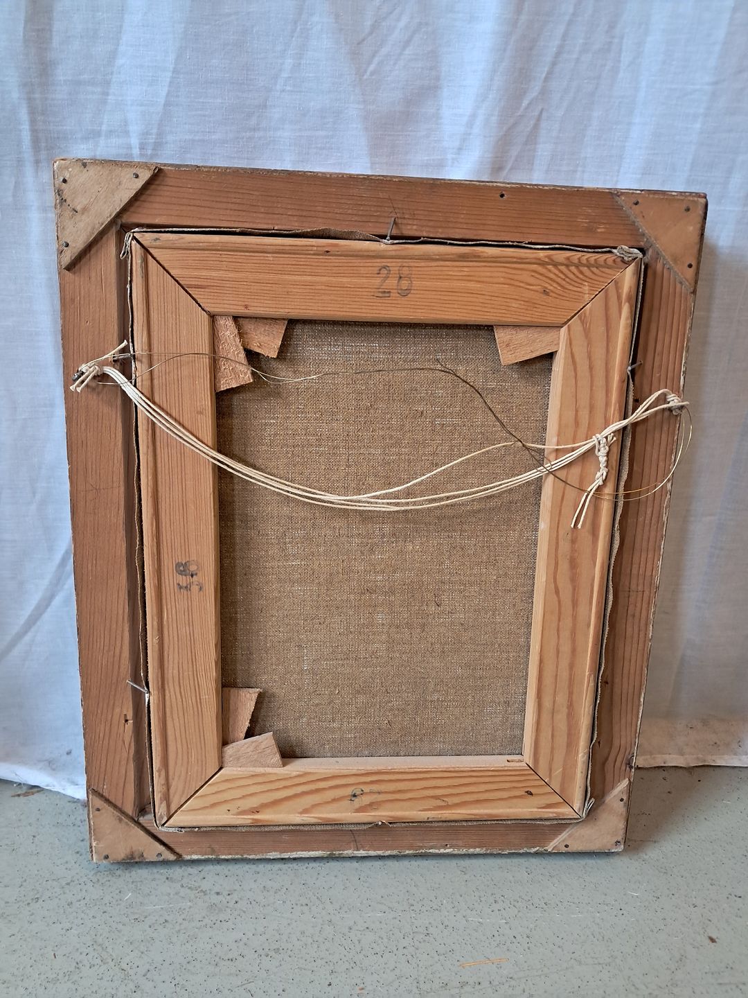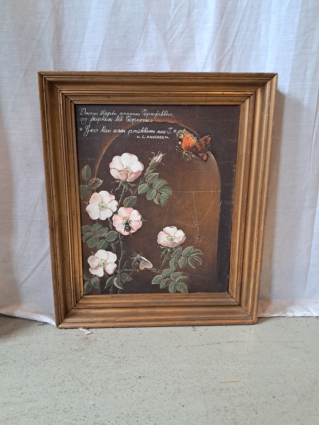 Maleri i guldmalet ramme, med tekst af H.C. Andersen, fra 1950erne.