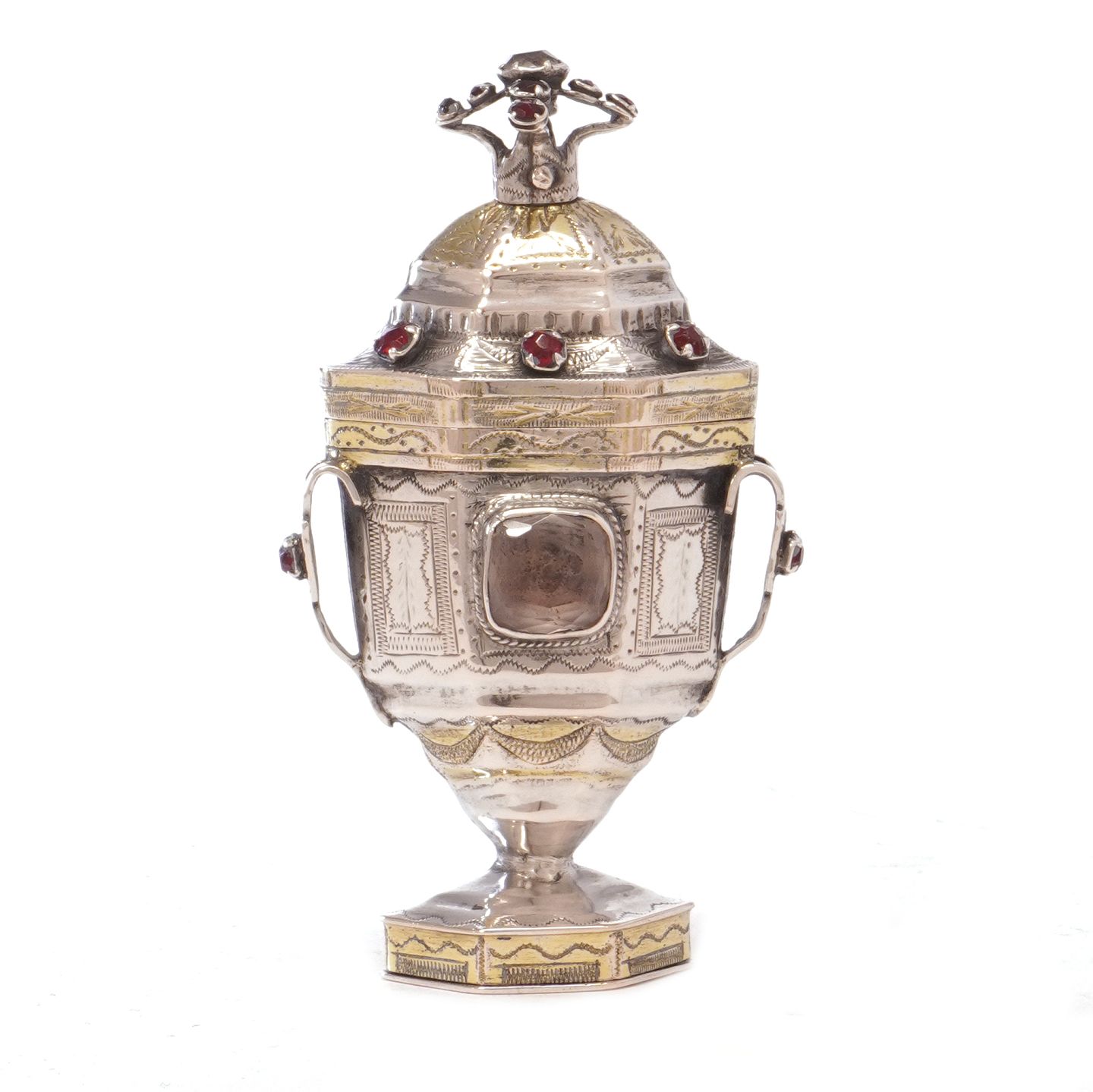 Hovedvandsæg i delvist forgyldt sølv udført af Martin Petersen Hommelhoff, Tønder, ca. år 1820. H: 9,5cm
