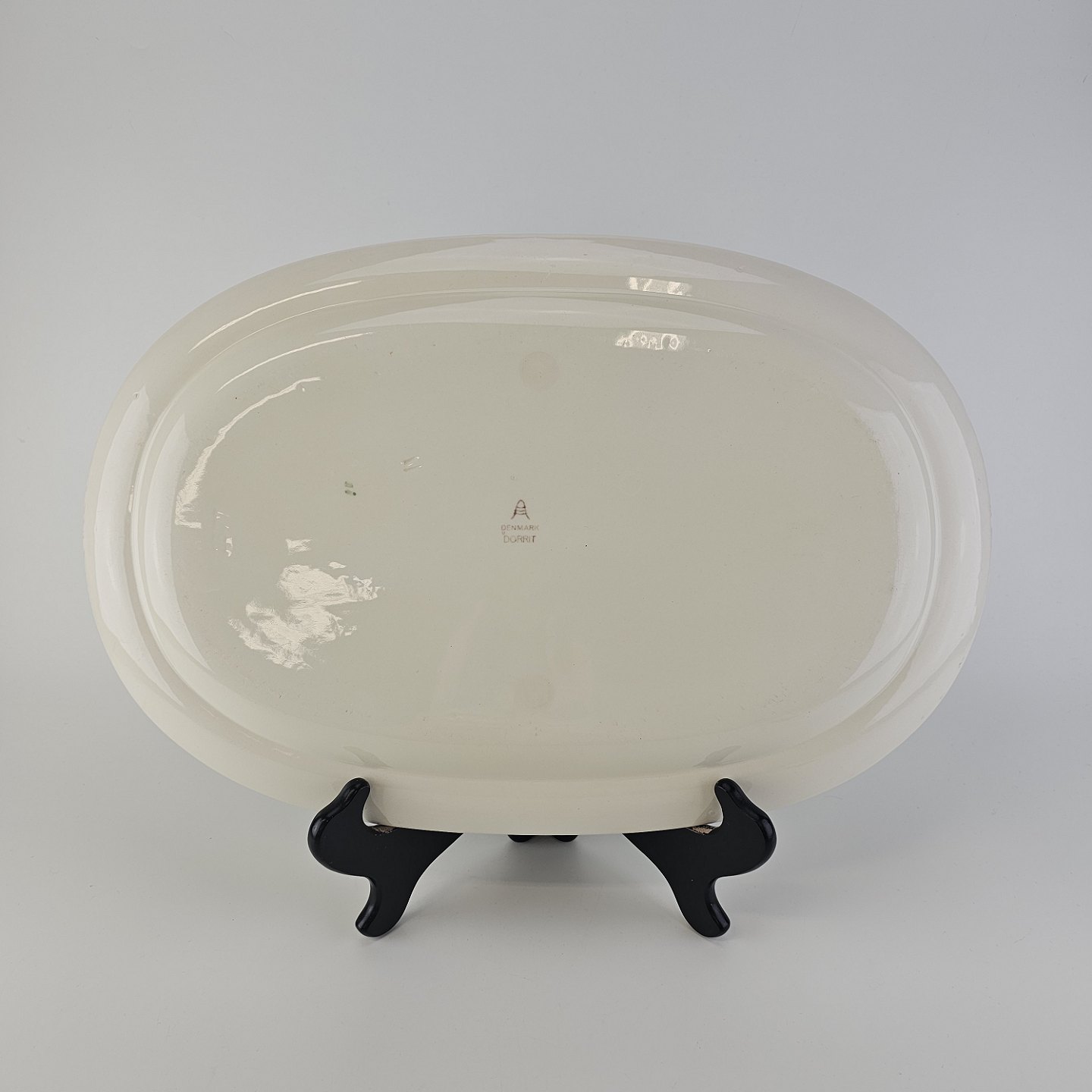 Ovalt fad i fajance fra stellet Dorrit fremstillet i perioden 1952-1966