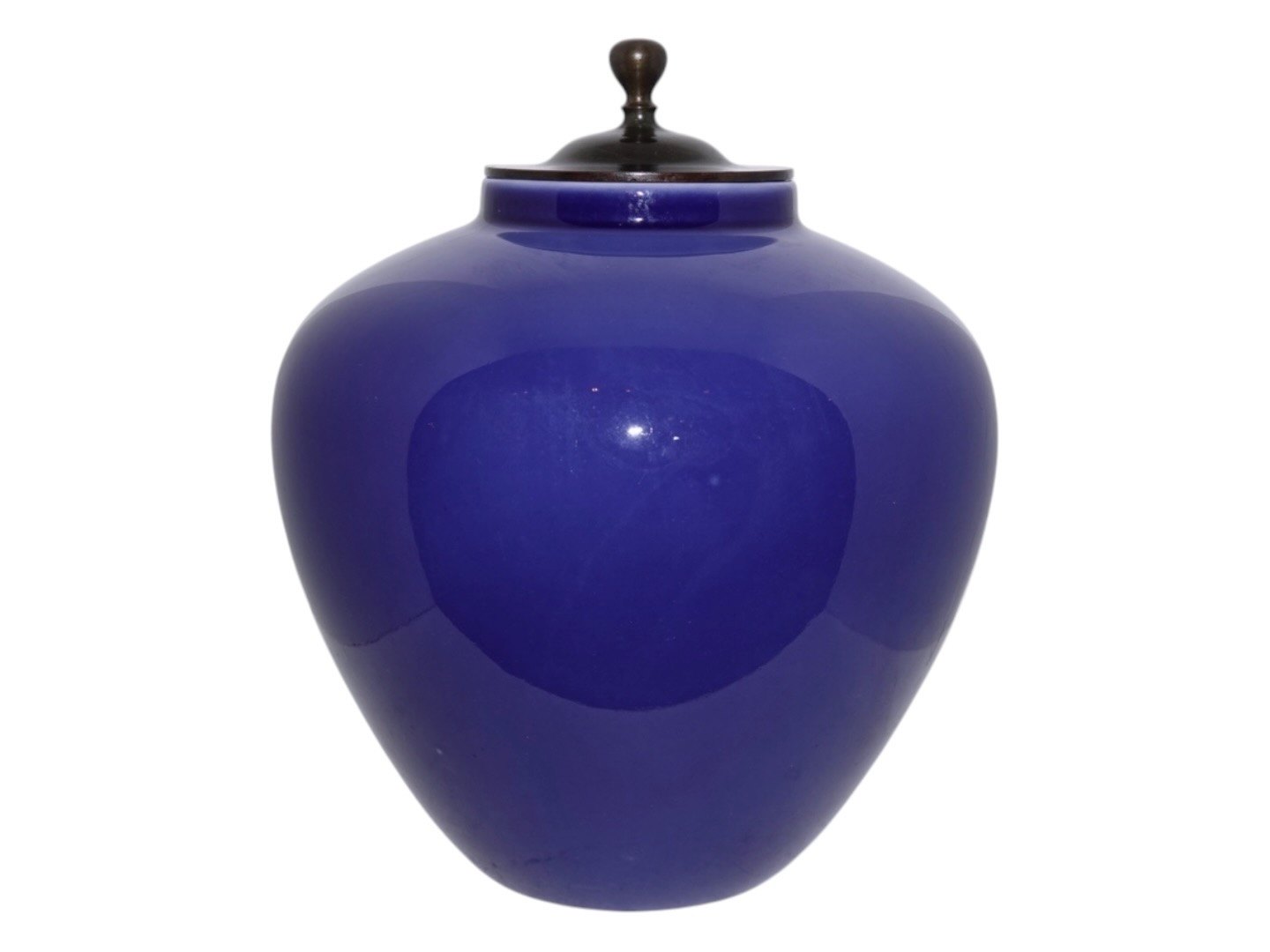 Stor lavendelblå vase med bronzelåg fra 1898-1923