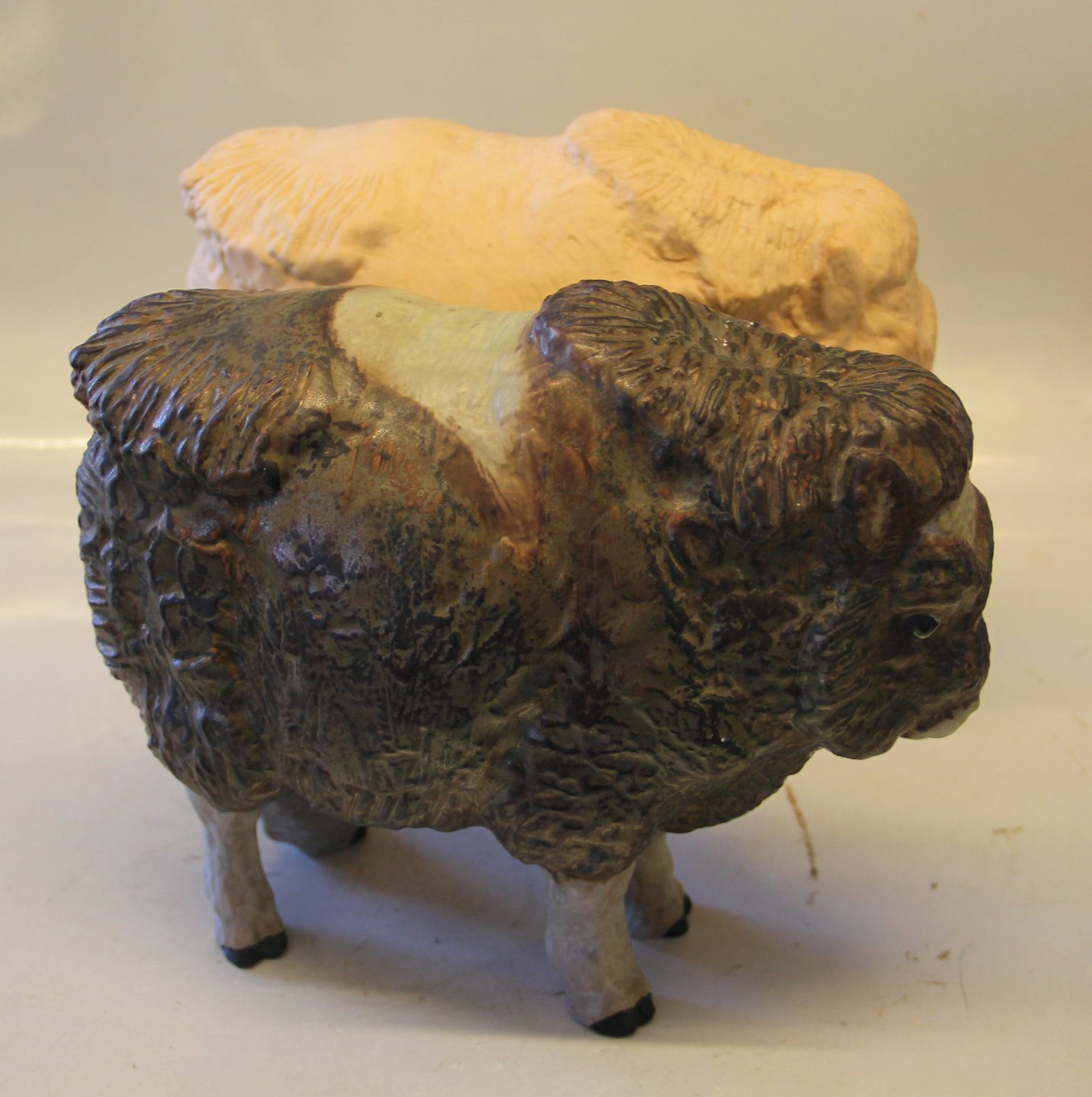 Royal Copenhagen Aluminia fajance 3149 Moskus Okse Jeanne Grut ca. 22 x 26 cm glaseret JG