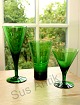 Mørkegrønt dansk römerglas m. hul stilk og rosetter.