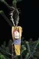 Antikt tinsel juletræspynt , engel i pap med sølv tinsel.