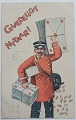 Nytårs postkort: Postbude med pengesæk 1911