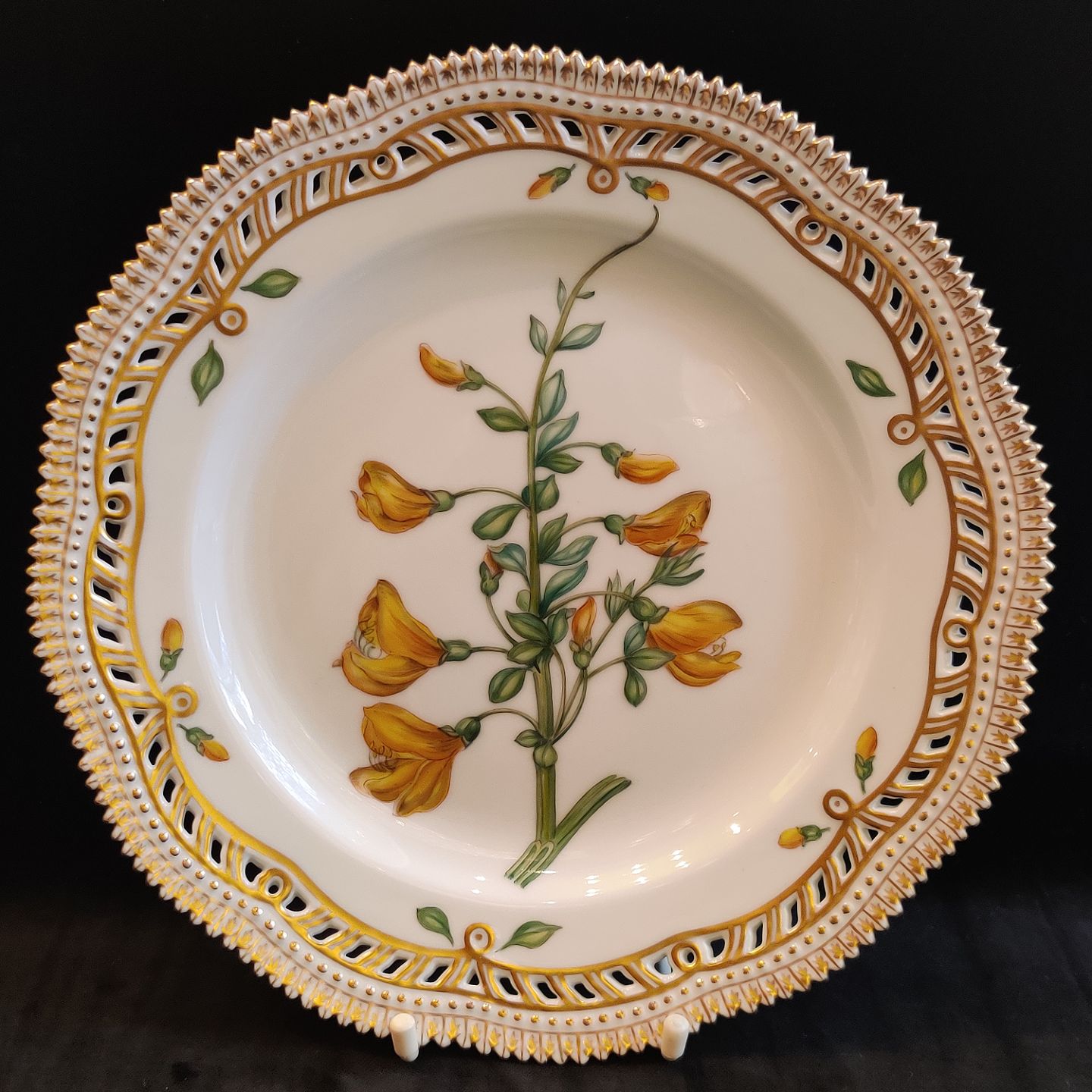 Royal Copenhagen, Flora Danica porcelæn; Frokosttallerken #386 (3554) med gennembrudt kant.