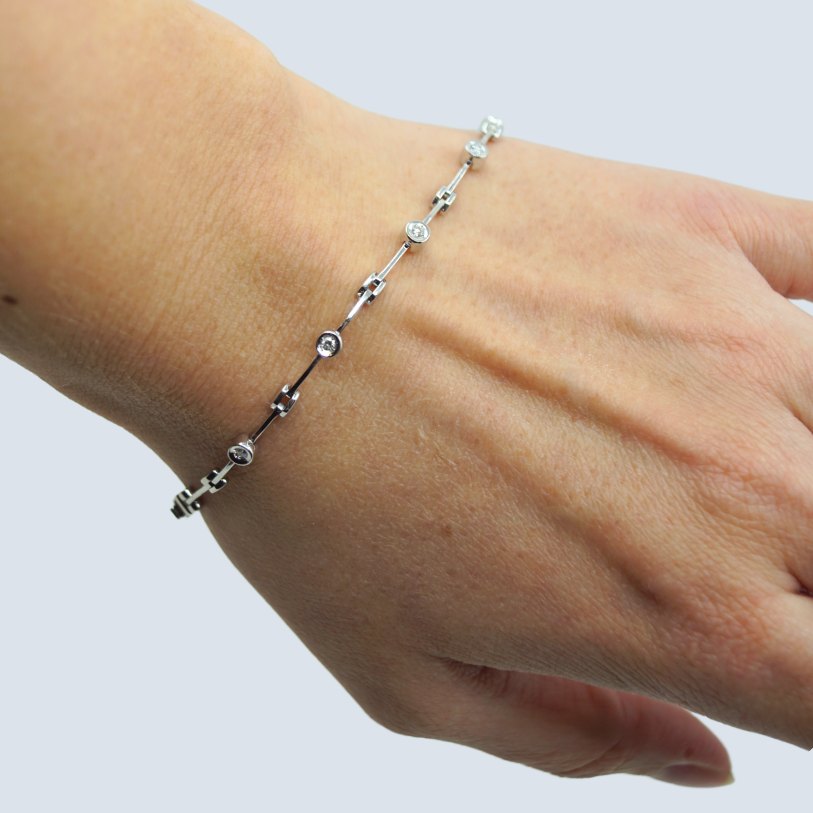 Bracelet in 14k white gold. Composed of links and set with 9 diamonds, a total of 0.18 ct.