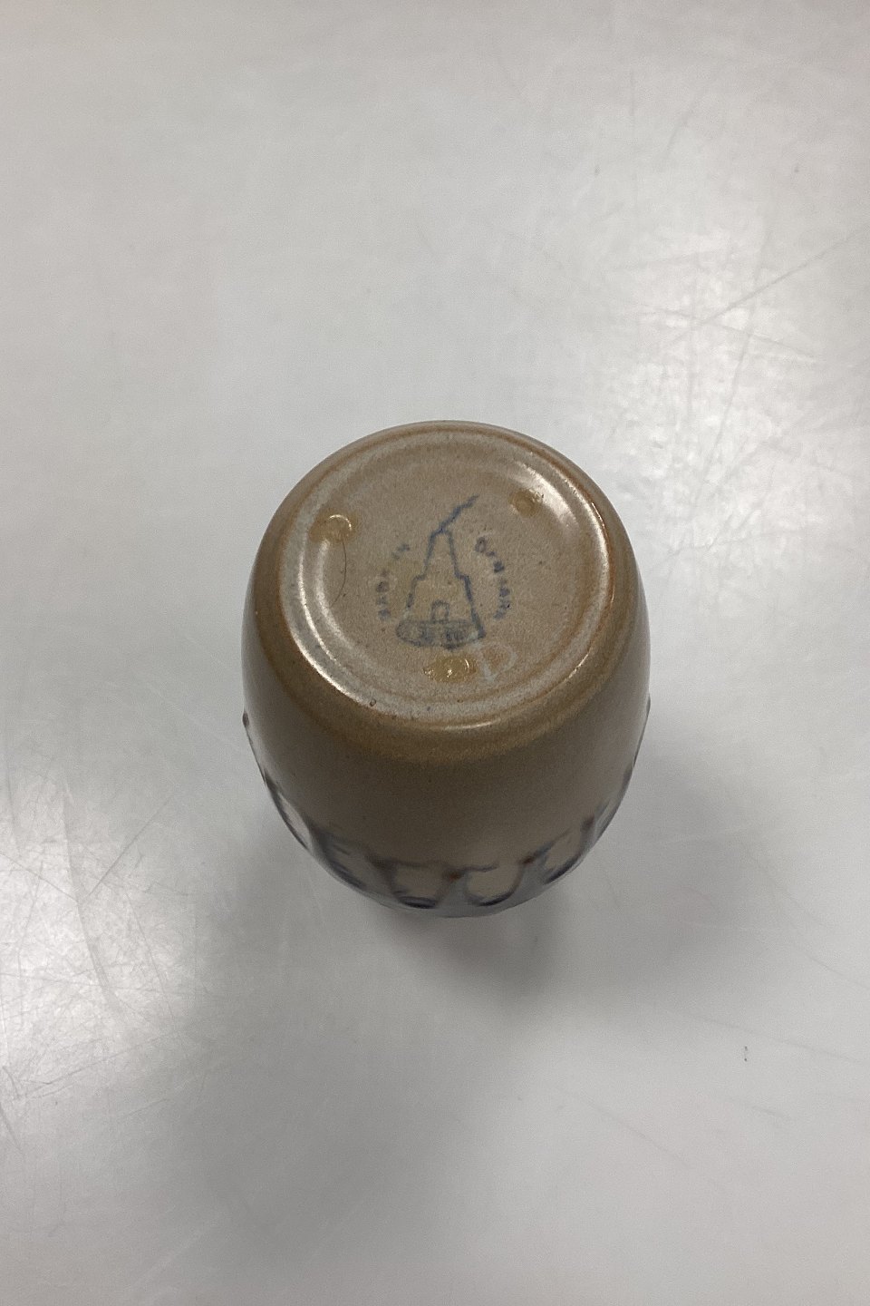 L. Hjort Keramik Vase. Beige, brun og blå glasur med moderne grafisk dekoration.