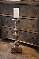 Antik svensk lysestage fra 1800 tallet i træ og lysholder i smedejern. . .